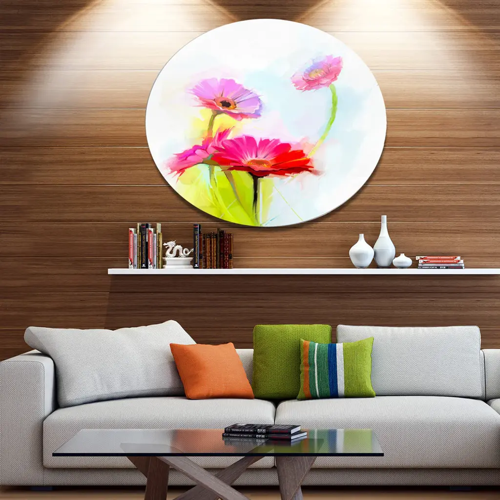 Still Life Cute Red Gerbera Flowers, Modern Floral Round Wall Art, 38"