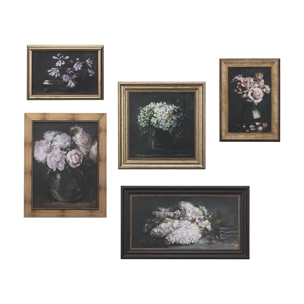 Still Life Flowers (Set Of 5) Framed Art Print - Black