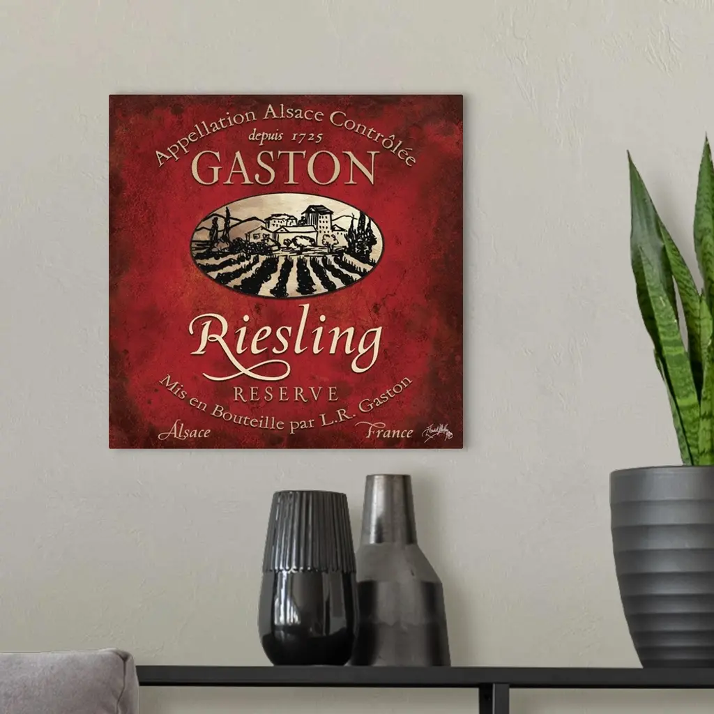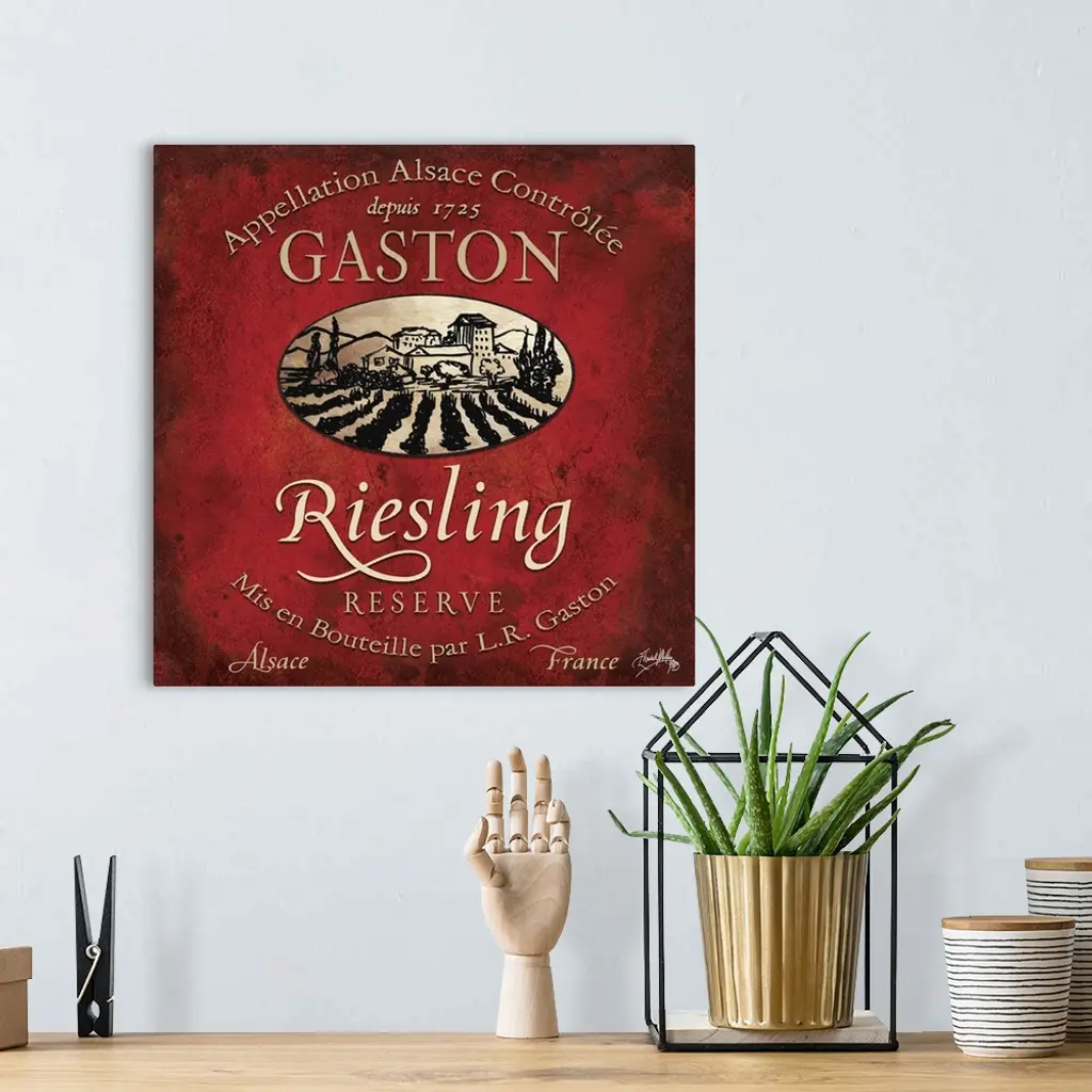 Contemporary artwork of a vintage stylized French Riesling wine bottle label.