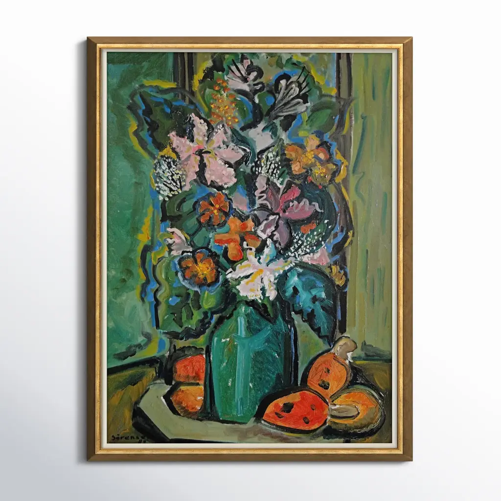 Soft, lush coloring fills the canvas with vibrant tones in this wall art painting by Paul Cezanne. Styled as a standalone piece or in an art wall collection, this timeless still life scene offers understated, high-art appeal. The original work is held by the Metropolitan Museum of Art.