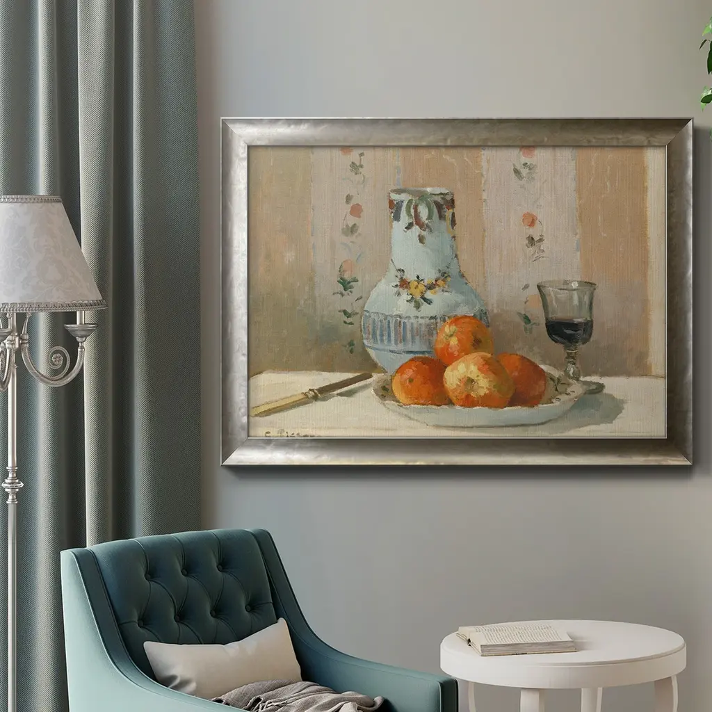 Still Life With Apples And Pitcher Premium Framed Canvas- Ready To Hang - 24x36 - Silver