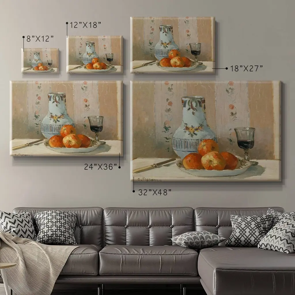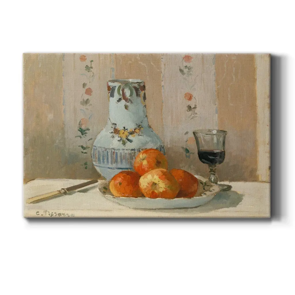 Still Life with Apples and Pitcher Premium Gallery Wrapped Canvas - Ready to Hang A premium hand stretched gallery wrapped canvas print created to last. Featuring a beveled a solid wood stretcher bar, each piece comes ready to hand 6 SIZES AVAILABLE 8''X12'' - Overall Size 12''X18'' - Overall Size 18''X27'' - Overall Size 24''x36'' - Overall Size 32''x48'' - Overall Size 40''x60'' - Overall Size Each piece is made to order. Built to Last Each piece comes ready to hang Solid wood stretcher Fade and Water resistant Made domestically