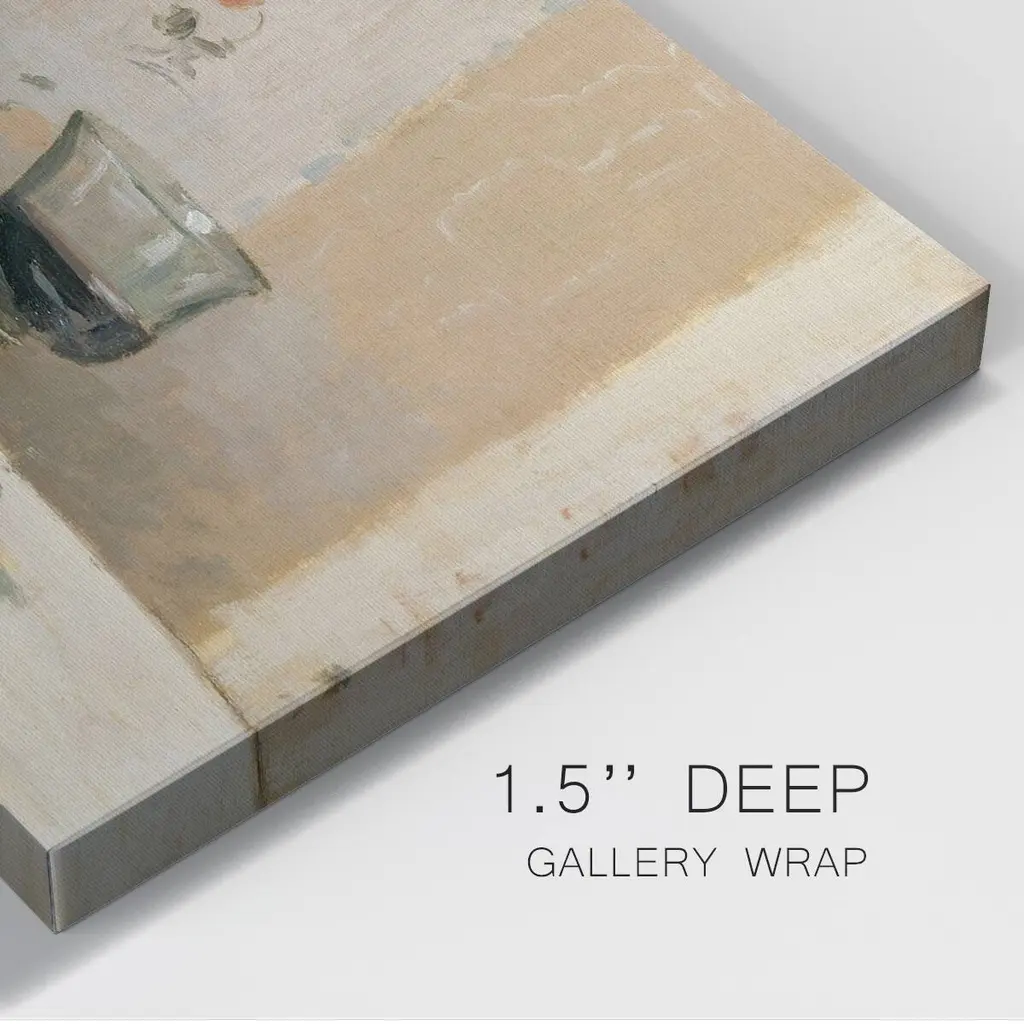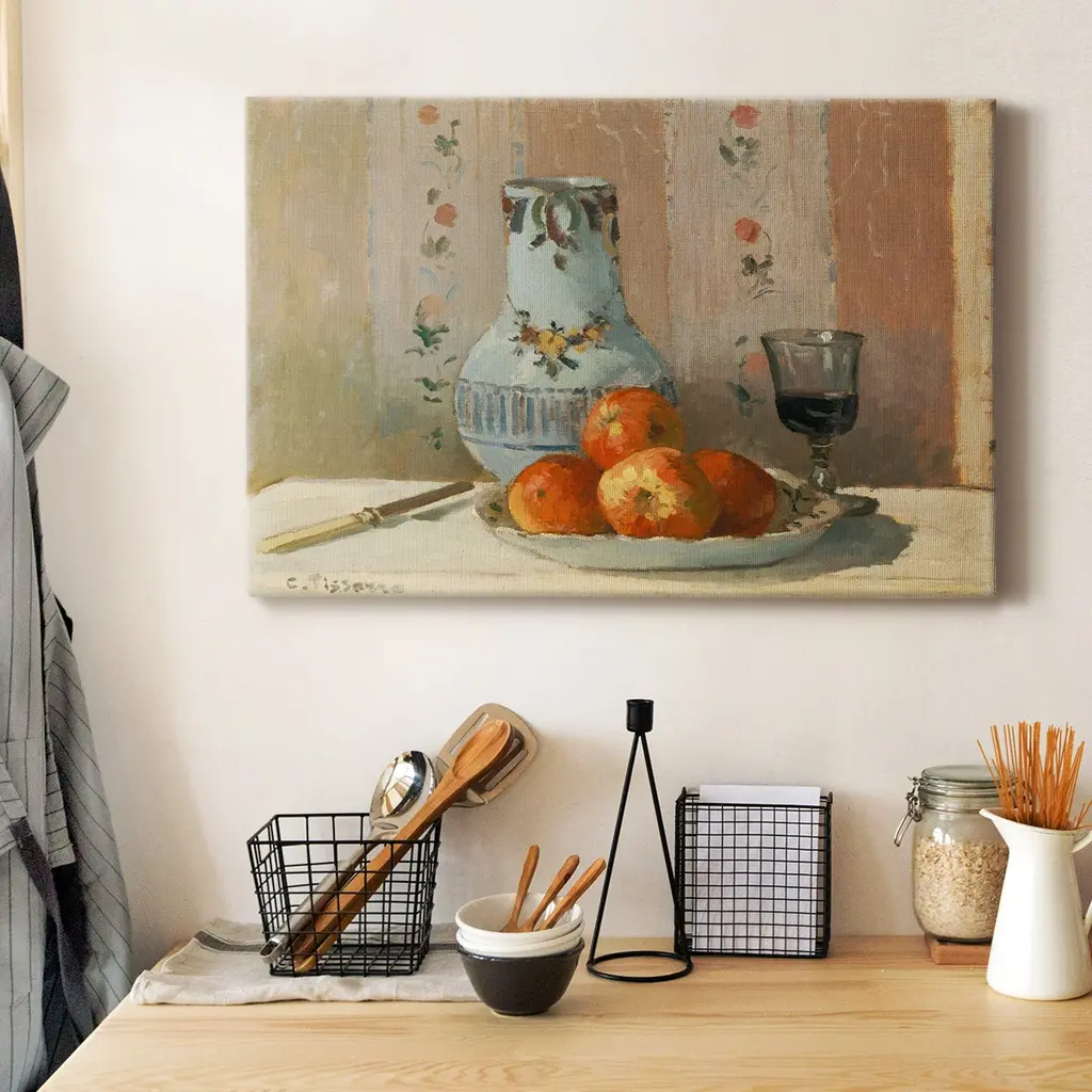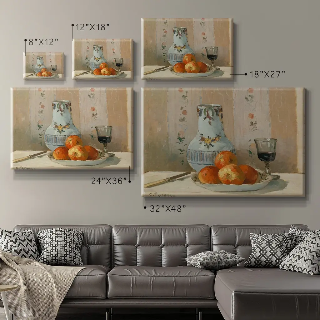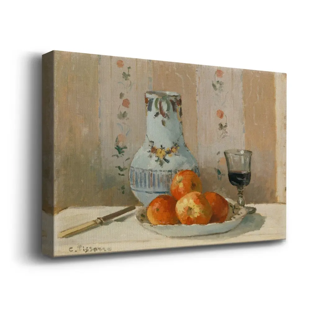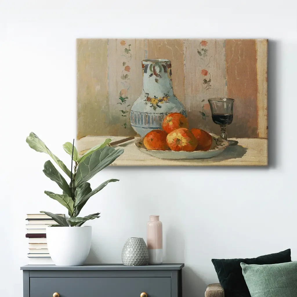 Still Life with Apples and Pitcher Premium Gallery Wrapped Canvas - Ready to Hang A premium hand stretched gallery wrapped canvas print created to last. Featuring a beveled a solid wood stretcher bar, each piece comes ready to hand 6 SIZES AVAILABLE 8''X12'' - Overall Size 12''X18'' - Overall Size 18''X27'' - Overall Size 24''x36'' - Overall Size 32''x48'' - Overall Size 40''x60'' - Overall Size Each piece is made to order. Built to Last Each piece comes ready to hang Solid wood stretcher Fade and Water resistant Made domestically