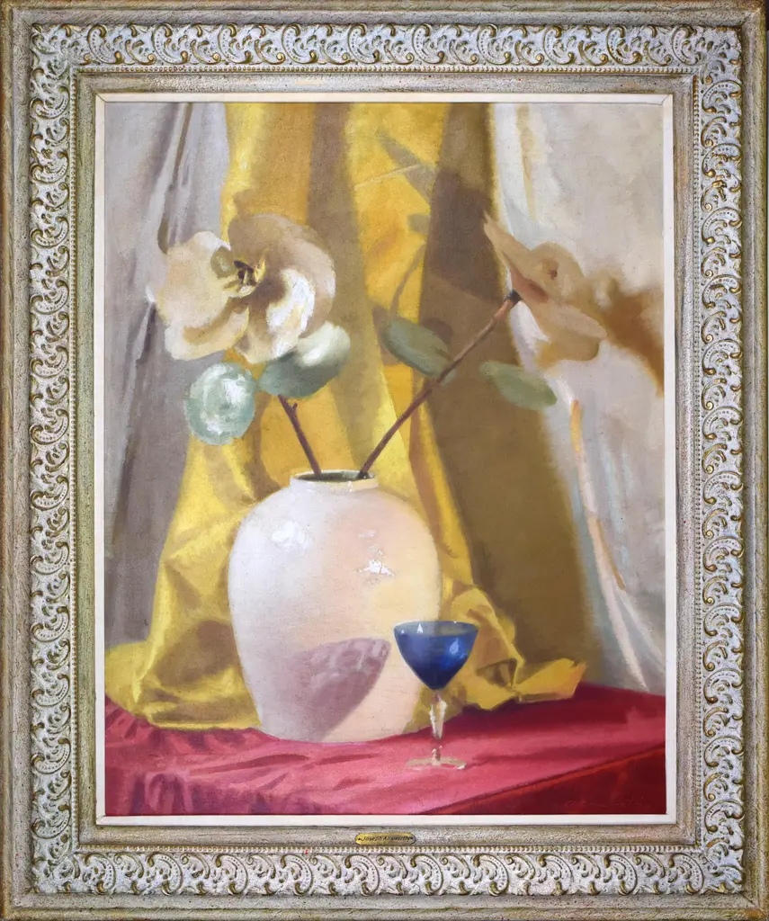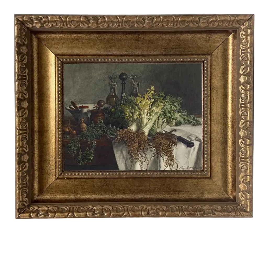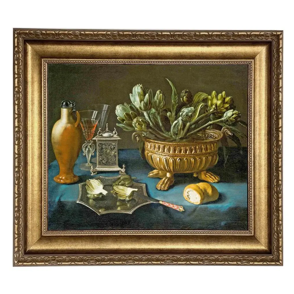 “Still Life With Artichokes And Other Silver Objects” Contemporary Reproduction Print On Canvas, Framed
