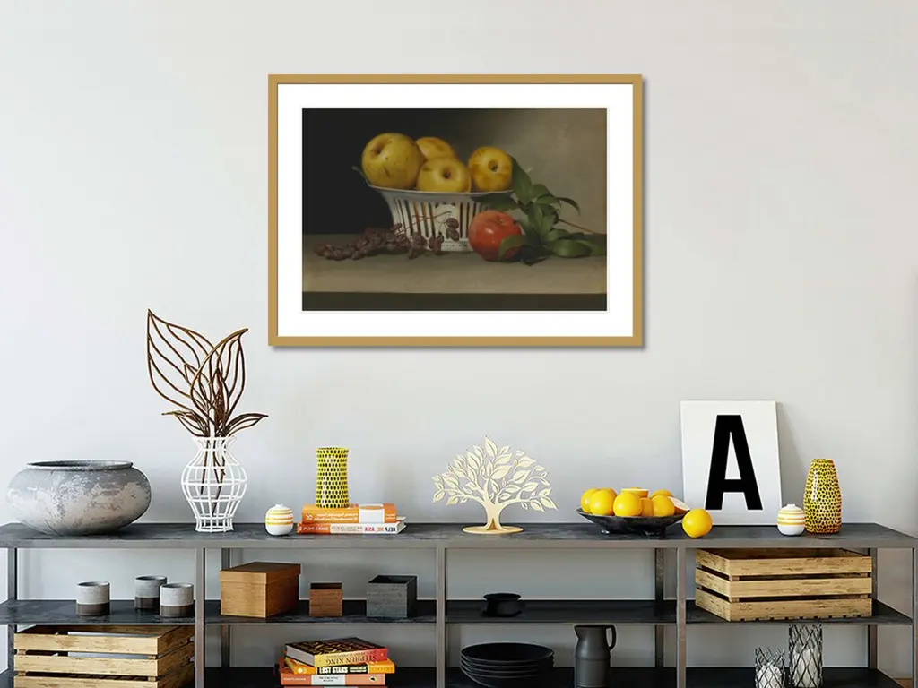 Still Life With Raisins Yellow & Red Apples In Porcelain Basket By Raphaelle Peale Print