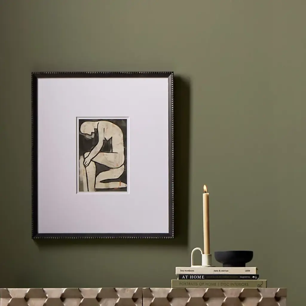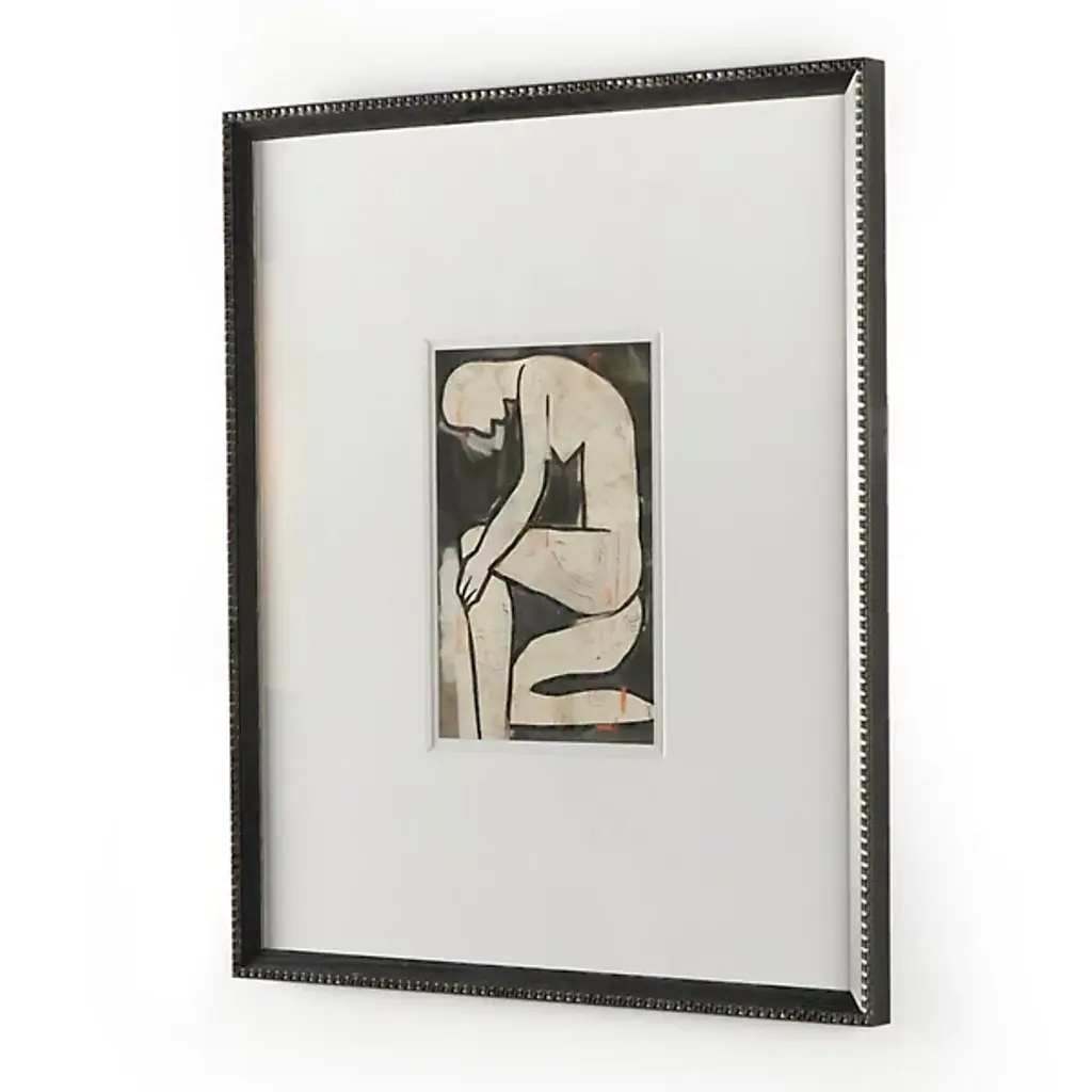 The Stoic Wall Art from Four Hands pays homage to traditional block printmaking with its minimalist approach. Bangkok-based art house Coup d'Esprit combines raw lines and pure forms on textured fine art paper. The vertical presentation gains prominence through a double-thick white mat, while the decorative weathered black pine frame adds period authenticity. This abstract figural study stands as a testament to simplified forms and uncomplicated beauty. The natural distressing of the Brimfield black frame harmonizes with the artwork's understated nature, making each piece unique in its presentation.