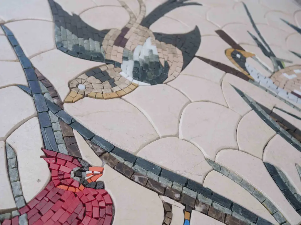 Experience the enchanting beauty of nature with our exquisite Stone Mosaic Art - Birds Carnavale. This captivating piece features an array of vibrant birds gracefully surrounding delicate flowers, all set against a neutral-toned background that enhances its visual appeal. Crafted with care, this handmade mosaic artwork showcases the meticulous artistry involved in using marble stones, resulting in a stunning finish that brings a touch of elegance to any space. Each element of the design is thoughtfully arranged to create a harmonious composition that draws the eye and invites admiration. Whether you choose to display it in your living room, garden, or even a commercial space, the Stone Mosaic Art - Birds Carnavale serves as a striking focal point that adds warmth and charm to your surroundings. Its versatile design makes it suitable for both interior and exterior settings, allowing you to enjoy its beauty in various environments.This unique piece is not just decor; it's a celebration of artistry and nature. Let the vibrant colors and intricate details of the Stone Mosaic Art - Birds Carnavale elevate your home decor and create an inviting atmosphere for guests. Bring the joy of a carnival, filled with lively birds and blooming flowers, into your living space with this stunning mosaic art. Indulge in the timeless elegance of handmade craftsmanship and make a statement with the remarkable Stone Mosaic Art - Birds Carnavale today.
