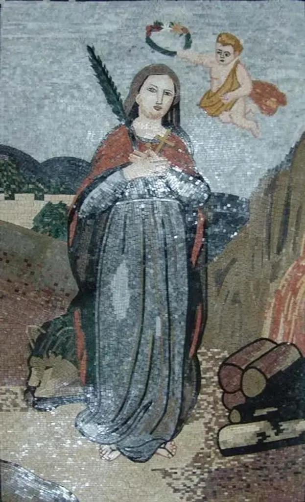 Enhance your space with our exquisite Stone Religious Mosaics Murals, a stunning piece that brings elegance and spirituality to your home. Each mural is meticulously handcrafted from 100% natural marble, ensuring that every detail is both beautiful and durable. This magnificent artwork depicts a serene angel gracefully hovering over Mary as she accepts her crown, capturing a moment of divine grace and poise. The intricate design and vibrant colors of the mosaic create a captivating focal point that resonates with beauty and reverence, making it perfect for those who cherish their faith.Our Stone Religious Mosaics Murals are versatile and can be displayed in various settings. Whether you choose to adorn your entrance corridor or enrich your living room with its charm, this mural is destined to evoke awe and admiration from all who encounter it. Each piece is thoughtfully designed to convey a powerful message of spirituality and hope. The use of natural marble not only signifies quality craftsmanship but also adds a touch of sophistication to your decor. Invest in a Stone Religious Mosaics Mural today and transform your space into a tranquil sanctuary. Ideal for personal use or as a meaningful gift for family and friends, this stunning piece of art will surely become a cherished heirloom for generations to come. Bring the divine into your home with this exceptional work of art that inspires reflection and reverence in every setting.