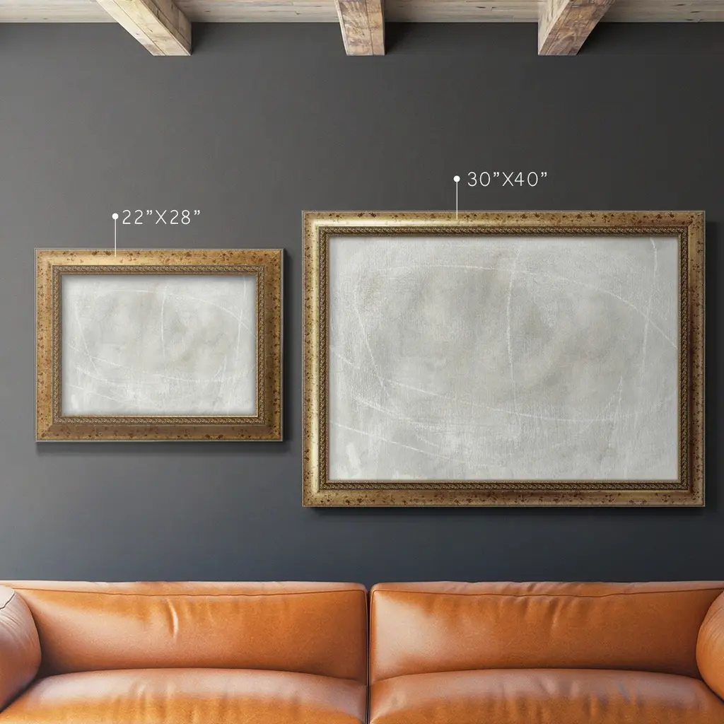 Stone Shadows I Premium Framed Canvas- Ready to Hang A Premium Framed Canvas created to last. Framed in distressed wood and available in an array of sizes and colors Featuring a beveled a solid wood stretcher bar, each piece comes ready to hand 3 SIZES AVAILABLE 16''X20'' - Overall Size 18'X27'' - Overall Size 24''x36'' - Overall Size Each piece is made to order. Each piece comes with hanging hardware. Made in the USA Ready to Hang Giclee Paper Print Acrylic Glass Beveled Matt Board