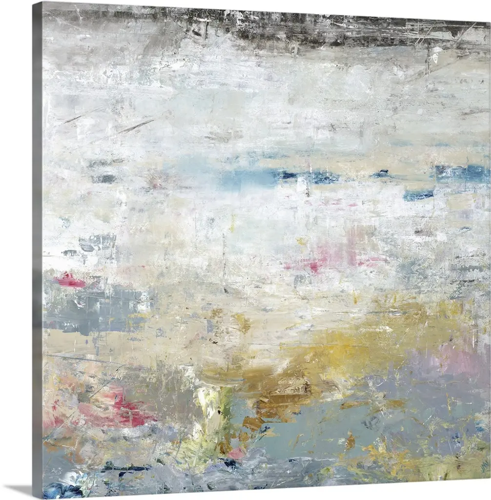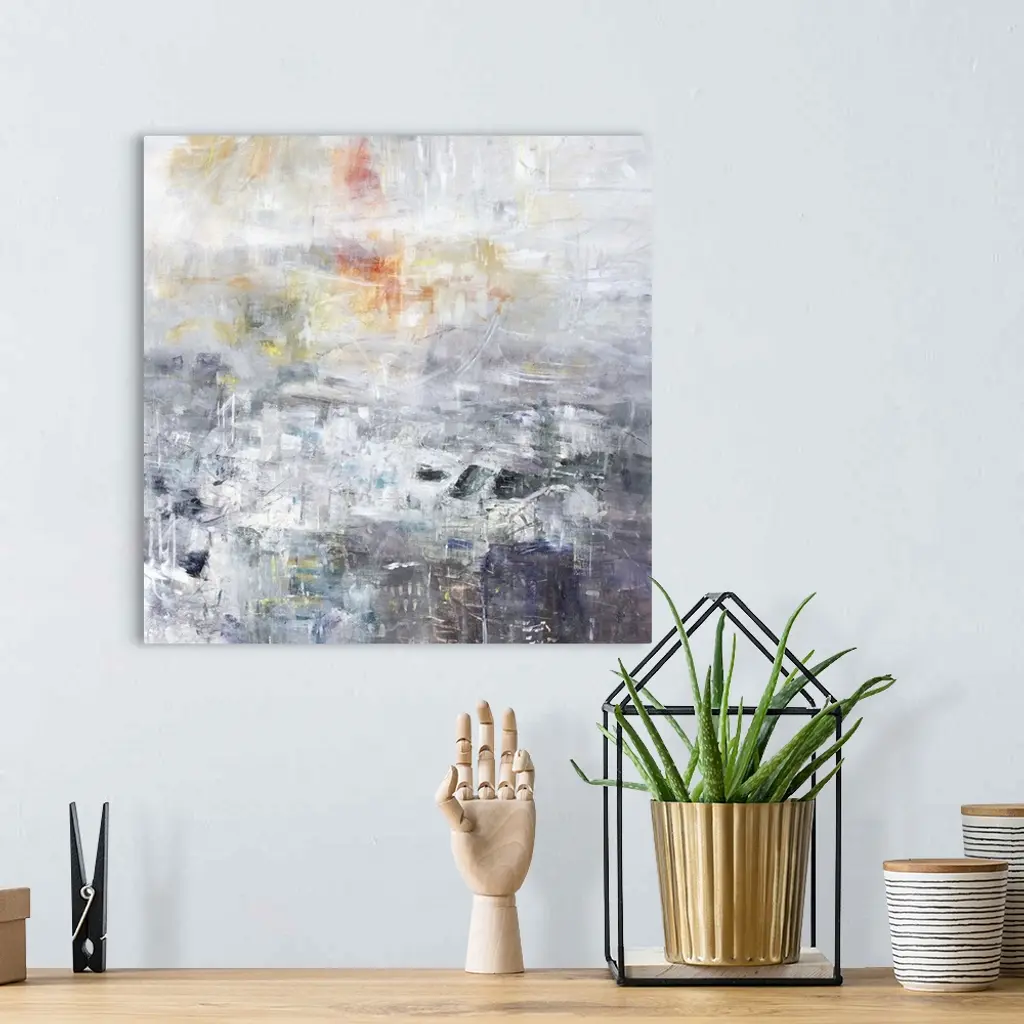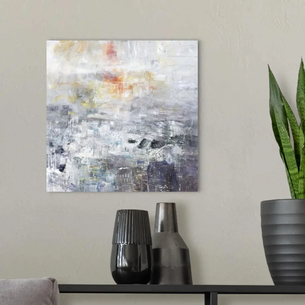 Contemporary painting in short, overlapping brushstrokes in mainly neutral tones that get warmer toward the top.