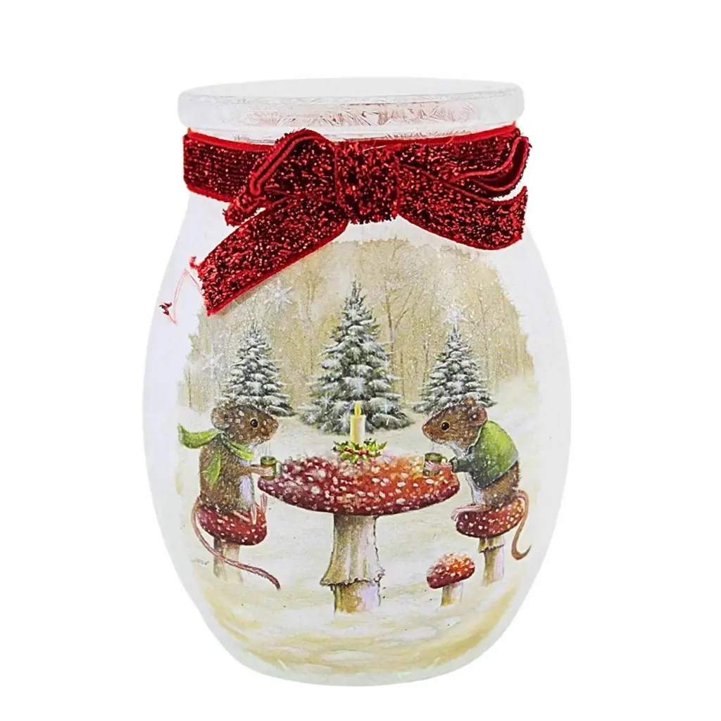 Stony Creek 4.0 Inch Merry Mice Small Pre-lit Jar Christmas Lighted Glass Accent , Christmas Decor Music, Tea Mice (1pc)