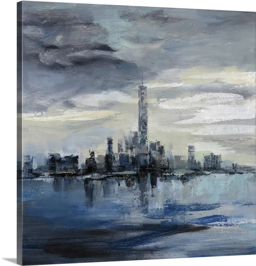 Storm Cloud City Scape Building Skyline Blue Grey Painting,1pc, Each 12 X 12
