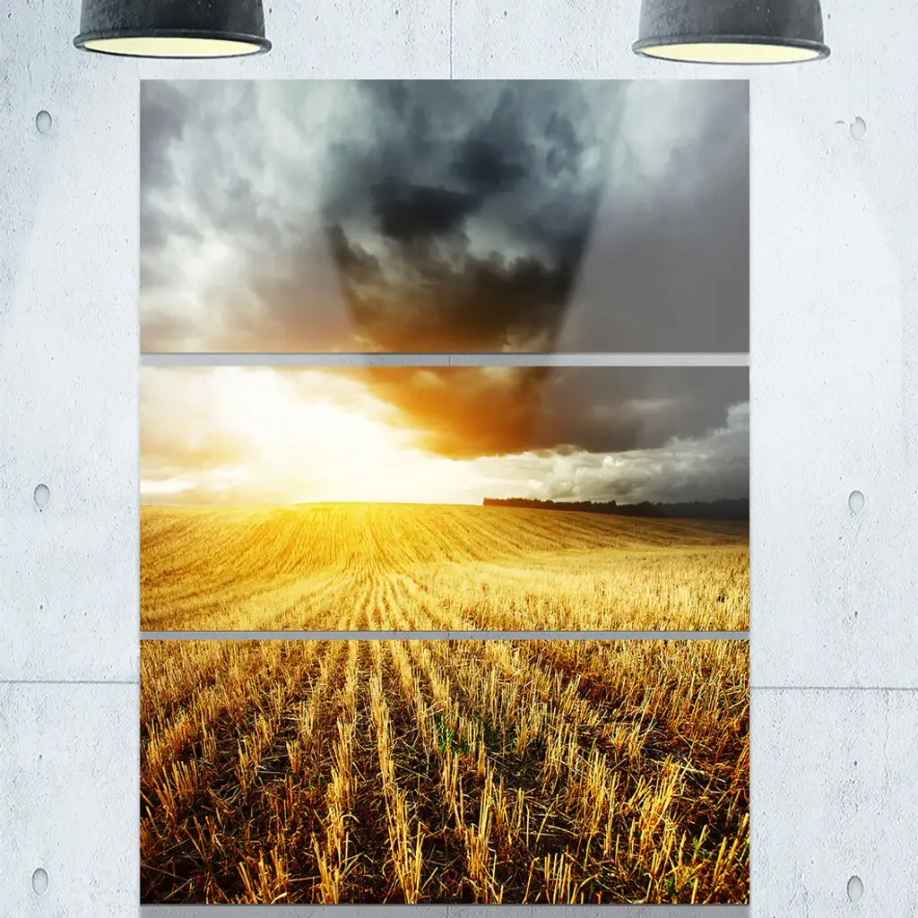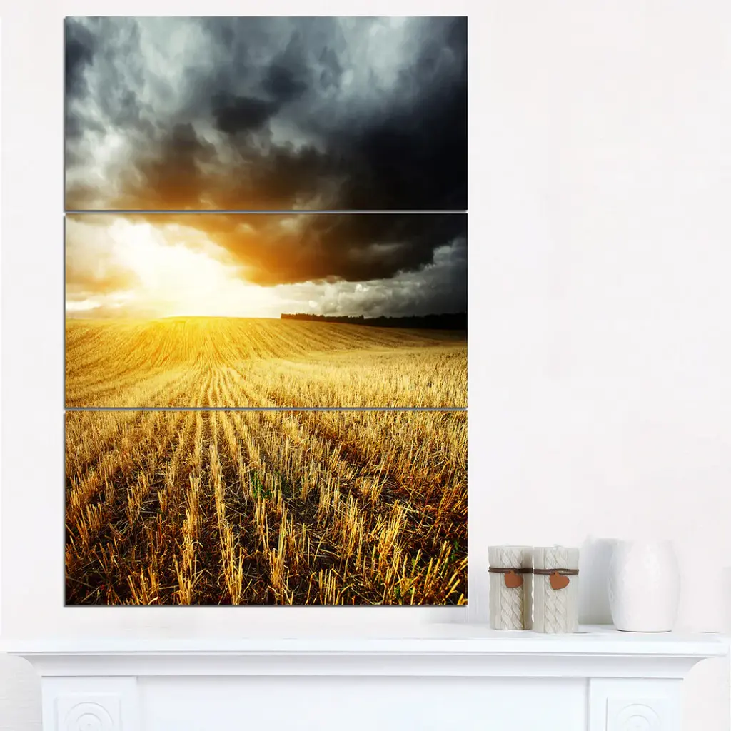"Storm Dark Clouds Over Wheat Stems" Metal Wall Art, 3 Panels, 28"x36"