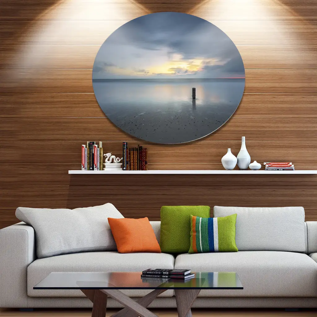 Stormy And Dark Sea Sunset, Seashore Large Disc Metal Wall Art, 36"