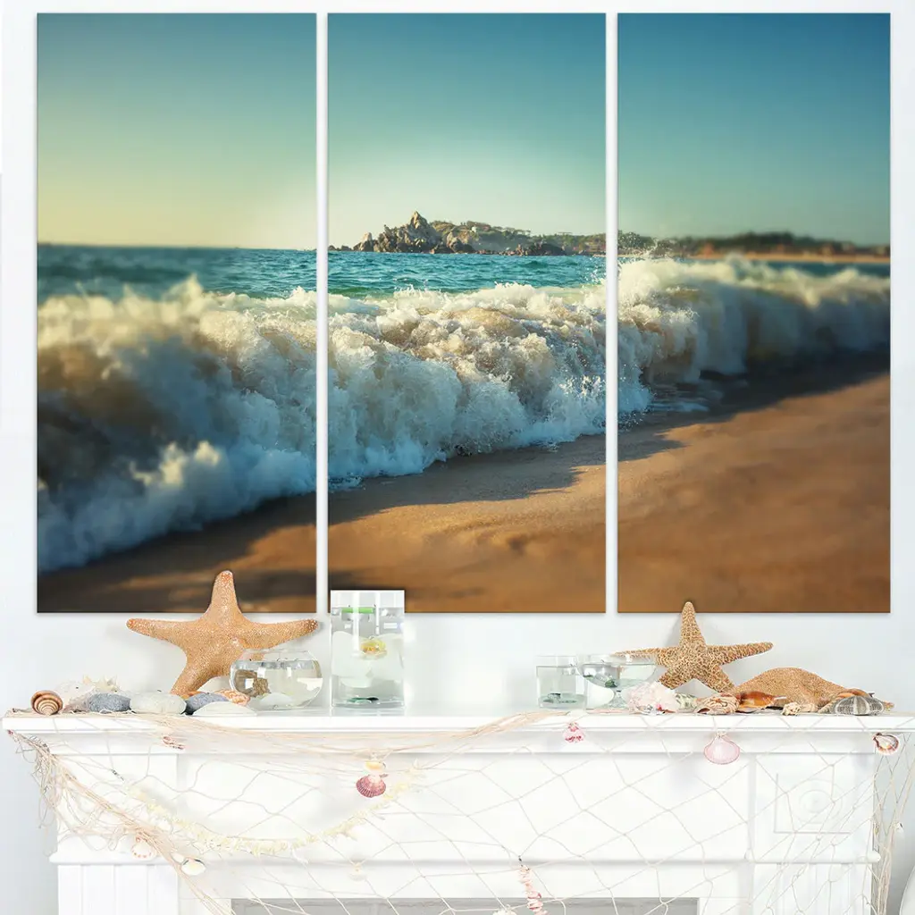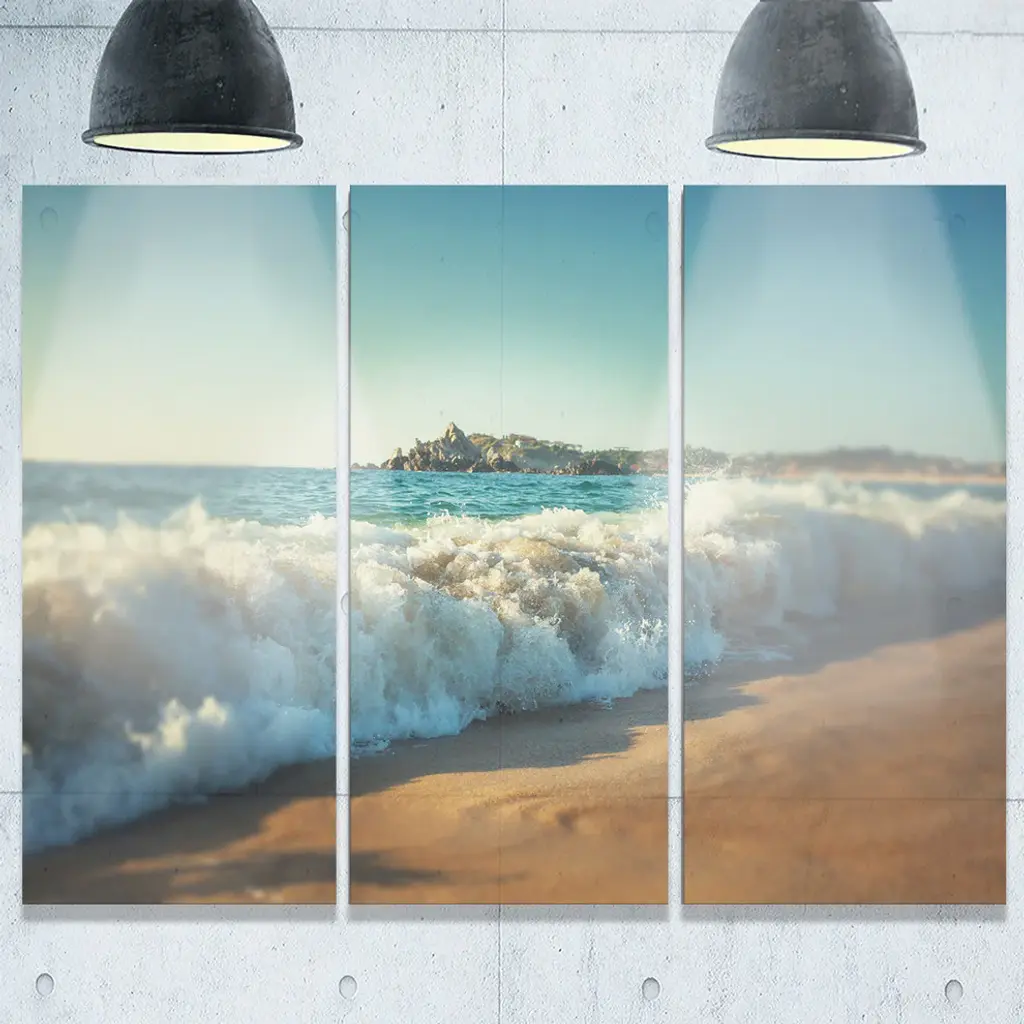 "Stormy Waves Hitting Beach Sand" Beach Metal Wall Art, 3 Panels, 36"x28"