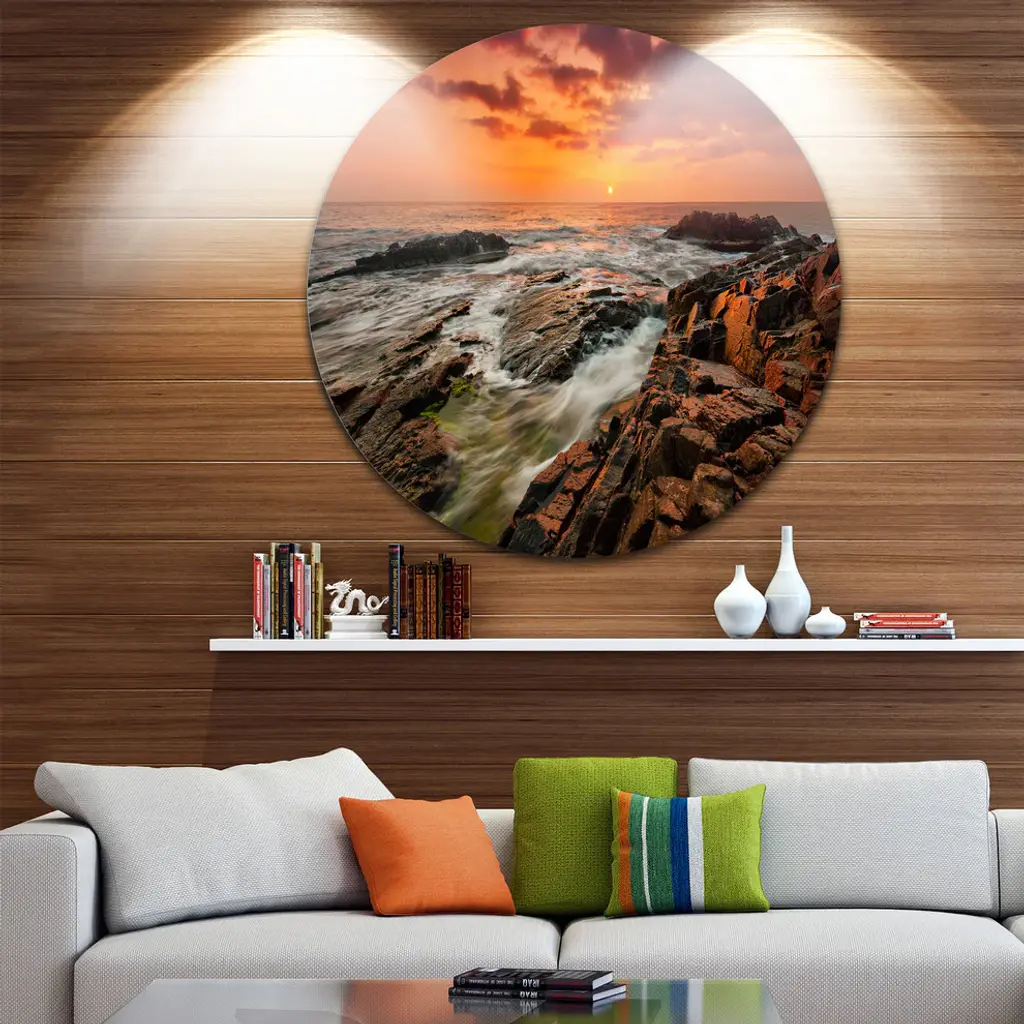 Stormy Waves Rushing Into Rocks, Beach Disc Metal Wall Art, 36"