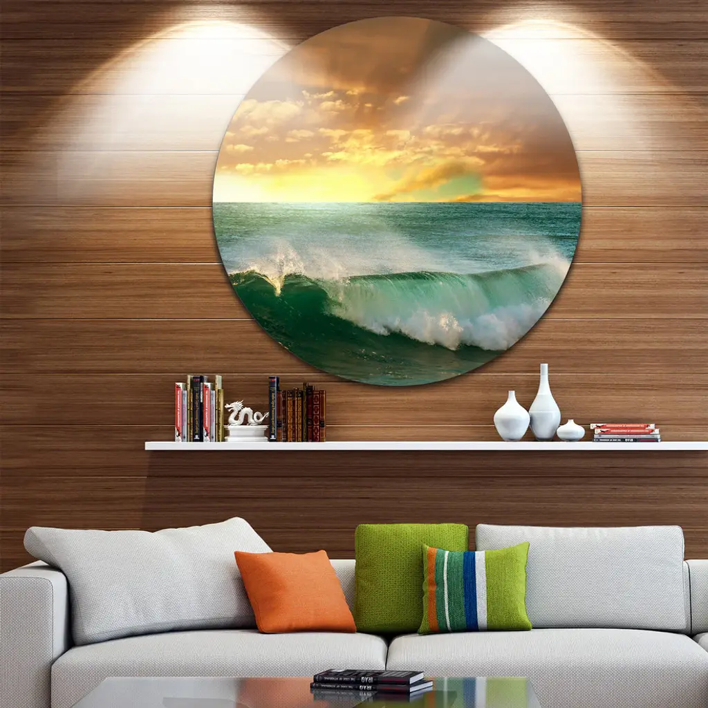 Stormy White Wave In Blue Sea, Modern Beach Round Wall Art, 36"
