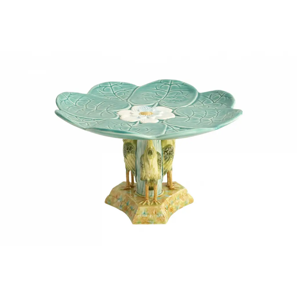 Portugal's most beloved cartoonist of the 19th century, Bordallo Pinheiro was famous for creating the character "Ze Povinho," a rustic laborer who was kind to his friends and contemptuous of those with money and power. His artistic style blends the honesty realism of late 19th-century Arts and Crafts movement with the dramatic, even grotesque, features of Goya's earlier paintings. In 1884, he and his son founded an eponymous factory in Caldas da Rainha along the Portuguese coast to create whimsical and naturalistic faience pieces based on his art. Because of the special minerals in the local soil and the skills of the craftsmen in the area, Caldas da Rainha is well-known as the capital of Portuguese pottery. Today the factory takes Pinheiro's original style into the 21st century with satirical portraits of modern day celebrities, while continuing its old fashioned, made by hand tradition of Portuguese pottery making.