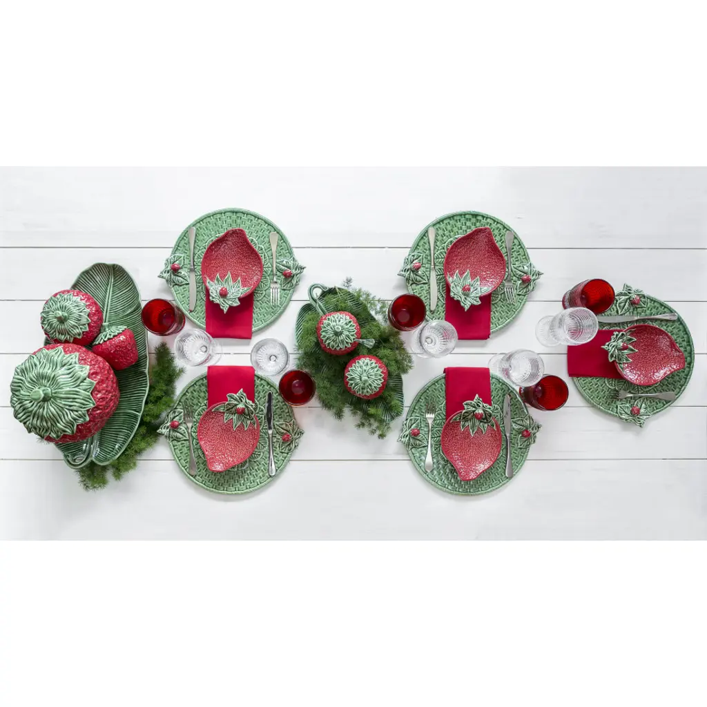 Strawberries are a perfect example on how the creative impulse and usefulness come together: the artist created utilitarian pieces where nature, humour and joy are served at the table Portugal's most beloved cartoonist of the 19th century, Bordallo Pinheiro was famous for creating the character "Ze Povinho," a rustic laborer who was kind to his friends and contemptuous of those with money and power. His artistic style blends the honesty realism of late 19th-century Arts and Crafts movement with the dramatic, even grotesque, features of Goya's earlier paintings. In 1884, he and his son founded an eponymous factory in Caldas da Rainha along the Portuguese coast to create whimsical and naturalistic faience pieces based on his art. Because of the special minerals in the local soil and the skills of the craftsmen in the area, Caldas da Rainha is well-known as the capital of Portuguese pottery. Today the factory takes Pinheiro's original style into the 21st century with satirical portraits of modern day celebrities, while continuing its old fashioned, made by hand tradition of Portuguese pottery making.