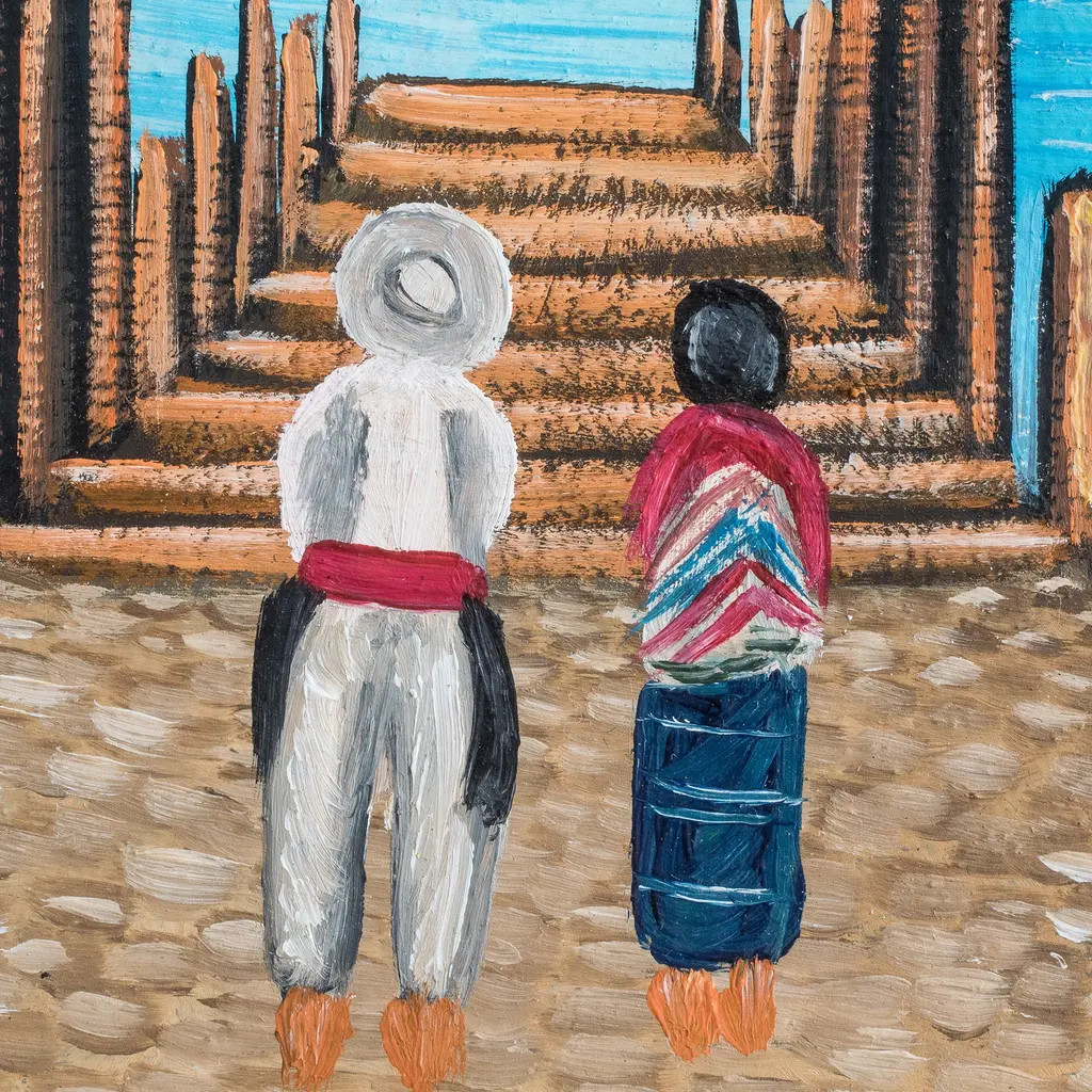 A lake, breathtaking mountains and fascinated Guatemalan citizens compose an impressionist painting in honor of the country's natural beauty. Artist Hugo Pichiya uses oil on canvas to create this sublime composition while reflecting on the uniqueness of his homeland. The work is titled Visitando el Lago in Spanish and comes stretched, ready to add a little piece of Guatemala to your environment.