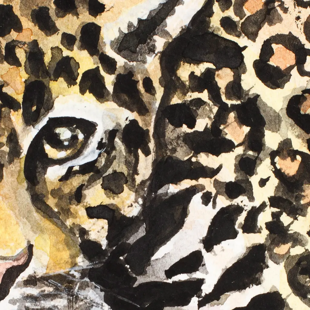 Stretched Signed Impressionist Watercolor Jaguar Painting- Jaguar And Cub