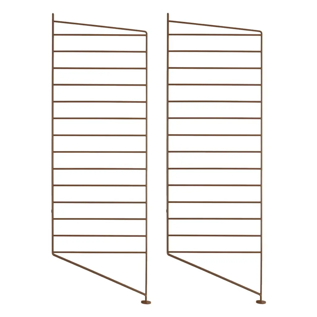 Available in 2 heights and 2 choices of depth, these String support panels provide for a space-saving, wall-mounted installation. Finished in gloss powder coat or with a galvanized treatment for outdoor use, they allow for any configuration of the String storage units and shelves. First introduced in 1949 by the late Nisse Strinning, the versatile system has evolved into a true still sought-after icon of modern design.