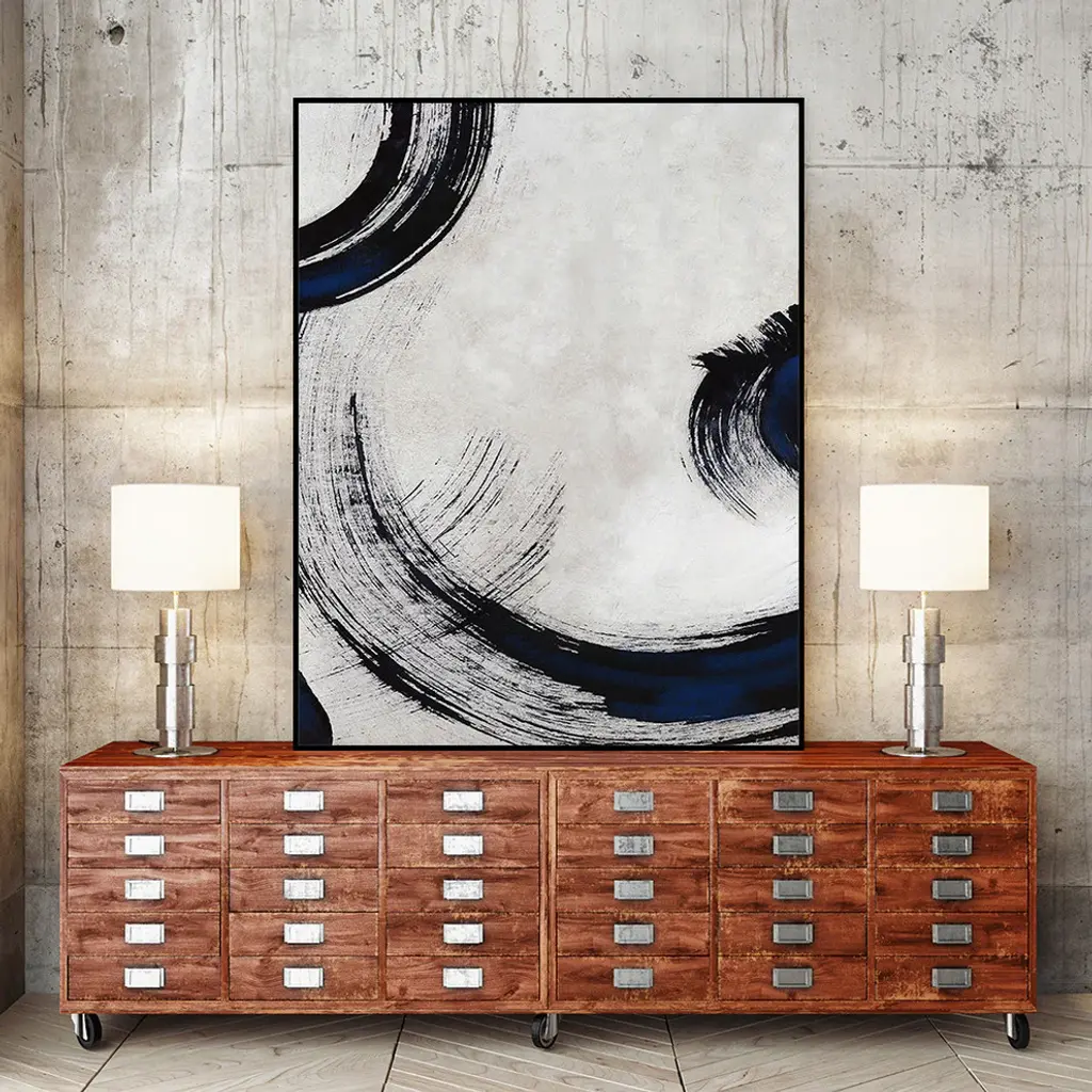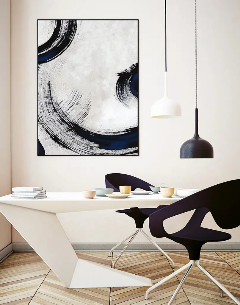 Your ready to hang artwork is printed on canvas then stretched and mounted to a 2-inch thick - hand stained black wood frame. Arrives at your door complete with an easy to use self-leveling hangking kit.