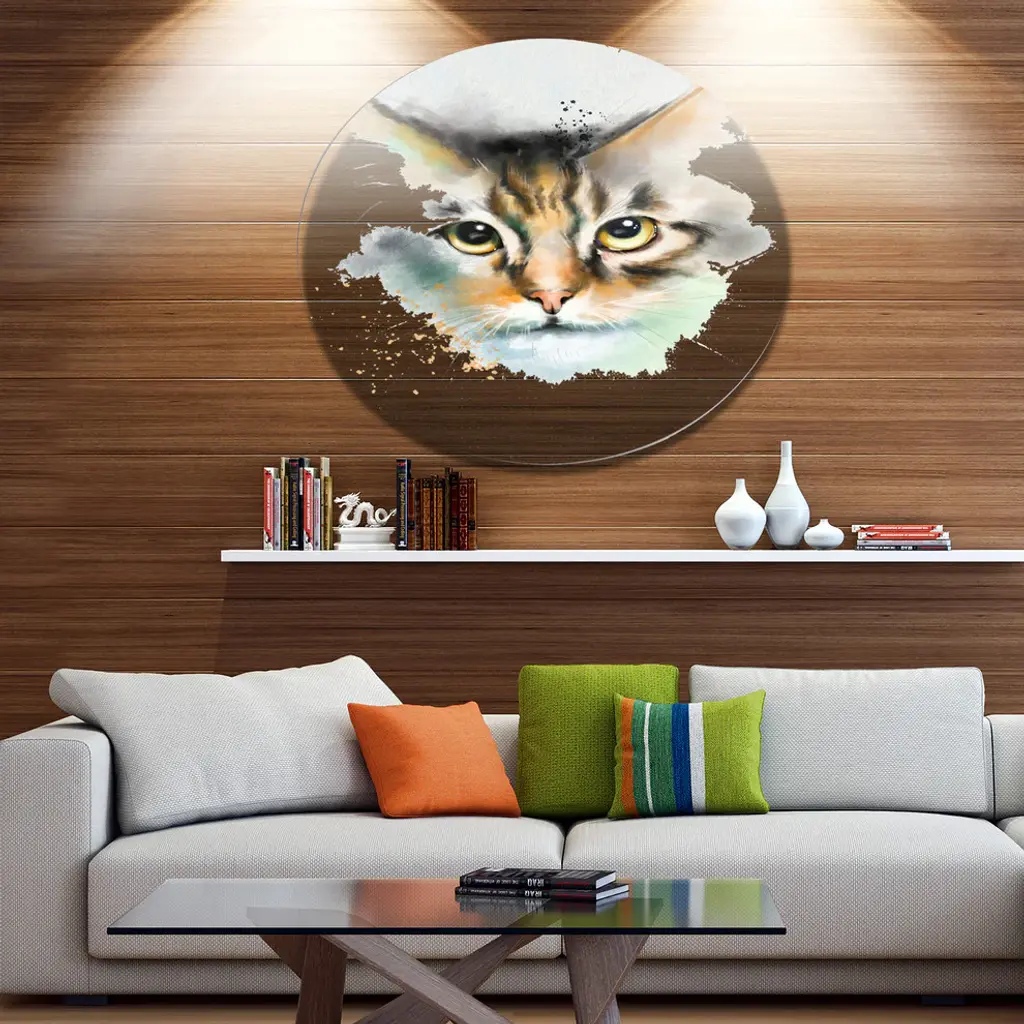 Bring Contemporary Abstraction to your home with this large Circle Metal wall art. This Strong Look of Cat Watercolor Sketch Metal Artwork makes it the focal point of any room or office. - White Gloss Coating ensures colors are extra vibrant with light reflection.- Aluminum grade Sheet Metal with 1 inch mounting frame on the back giving the illusion that the artwork is floating on the wall..- Mounting Brackets are included along with instructions.- High Quality Digital images are created directly into a glossy aluminum panel producing a stunning and captivating print into the glossy finish of the metal.- Water, Fire and Scratch resistant HD Aluminum panels.- Looks better than any photo paper and guaranteed to last at least 20 years- Easy to clean with a microfiber cloth. Colors are far superior to regular Canvas Art. - Easy to Hang