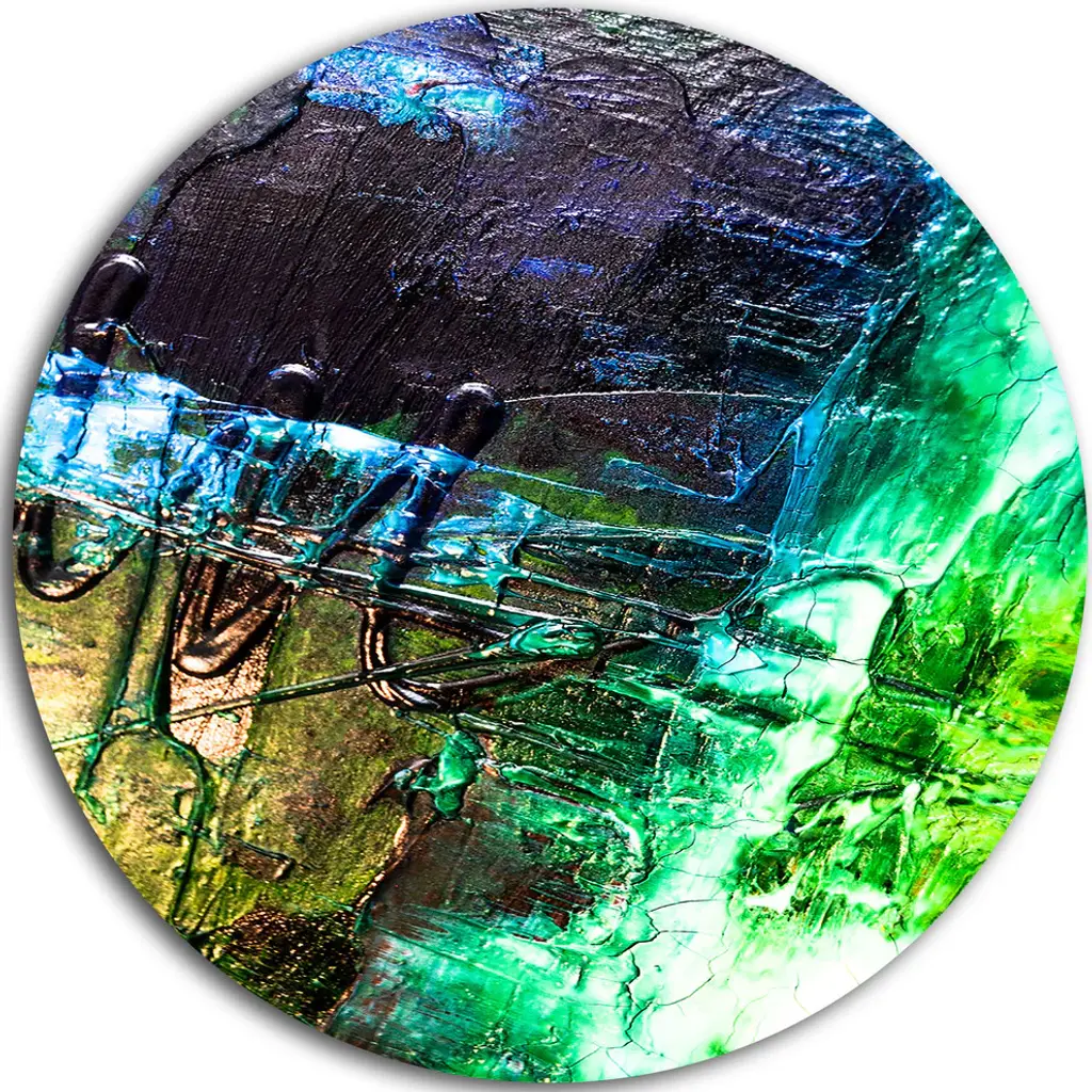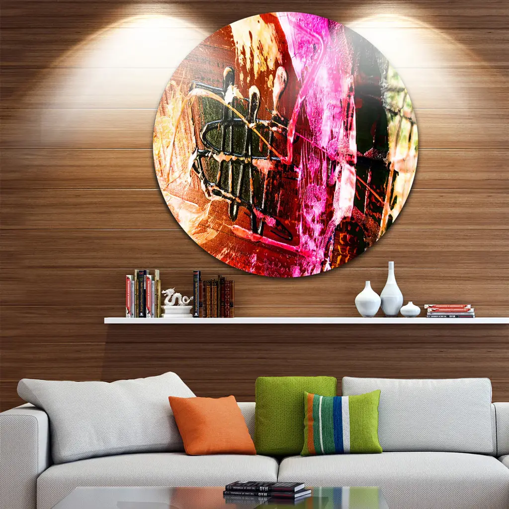 Bring Contemporary Abstraction to your home with this large Circle Metal wall art. This Structure Abstract Art Metal Artwork makes it the focal point of any room or office. - White Gloss Coating ensures colors are extra vibrant with light reflection.- Aluminum grade Sheet Metal with 1 inch mounting frame on the back giving the illusion that the artwork is floating on the wall..- Mounting Brackets are included along with instructions.- High Quality Digital images are created directly into a glossy aluminum panel producing a stunning and captivating print into the glossy finish of the metal.- Water, Fire and Scratch resistant HD Aluminum panels.- Looks better than any photo paper and guaranteed to last at least 20 years- Easy to clean with a microfiber cloth. Colors are far superior to regular Canvas Art. - Easy to Hang