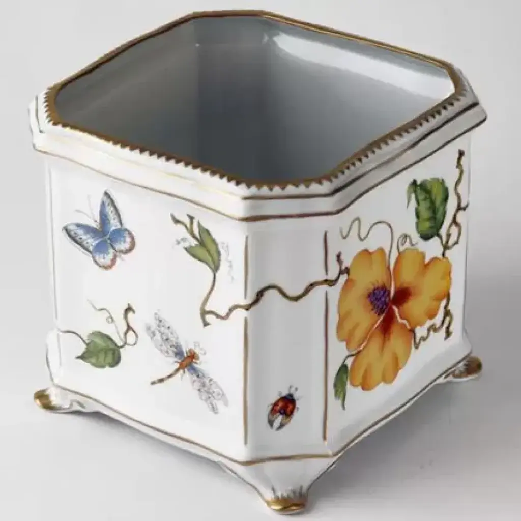 This lovely cachepot is a beautiful accent to any room. Anna Weatherley’s designs are based on botanical sketches from the 18th century as well as Dutch still-life paintings. At home, we find her pieces look just as good on our tables as they do on our walls. Sorry, we do not offer gift wrap for this item. Fashion designer, socialite, and artist Anna Weatherley's signature style of butterflies, flowers, and botanical drawings is brought by artists in her factory in Budapest, Hungary. There, they hand-paint and decorate each piece to create a unique work of art that brings beauty to your home all year.