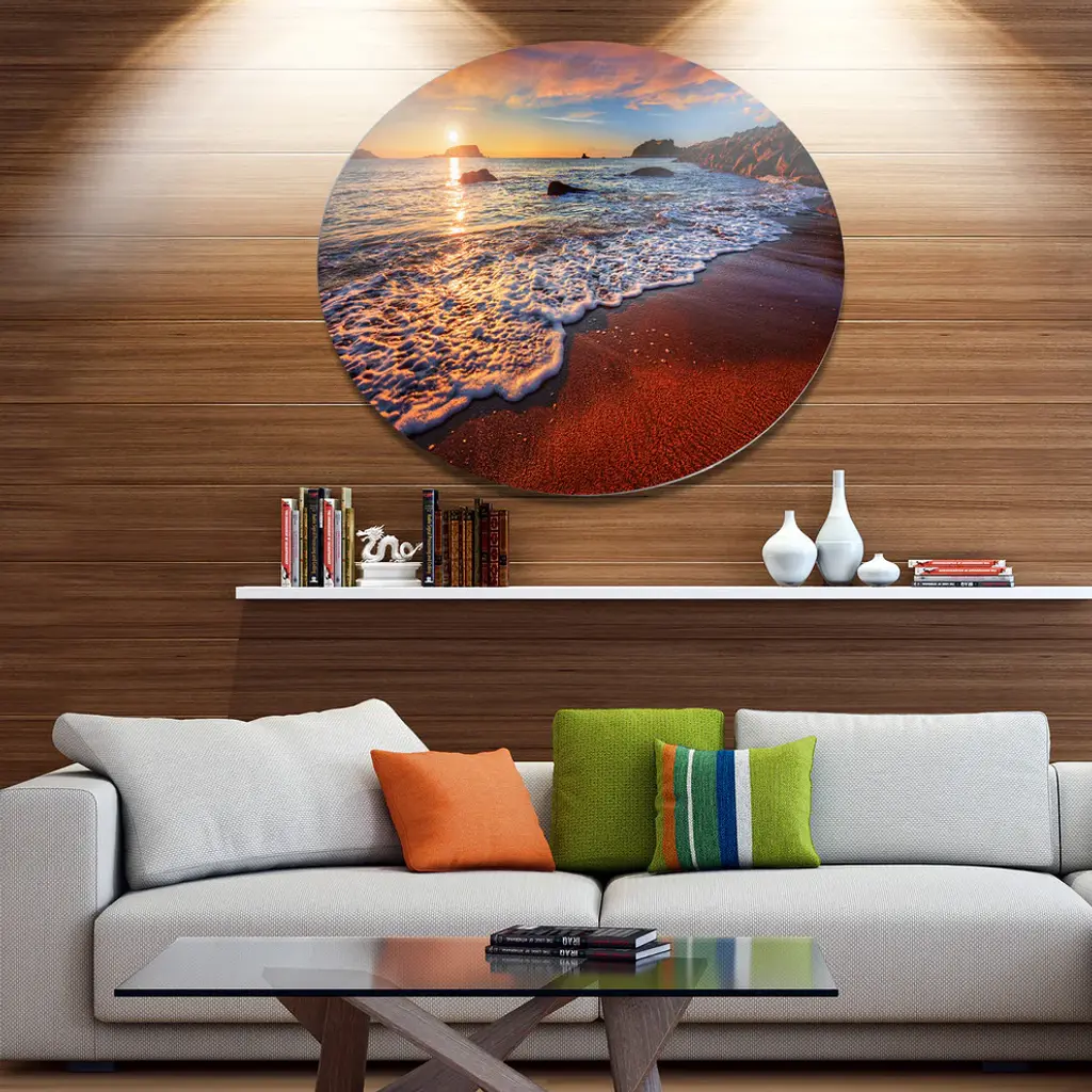 Stunning Ocean Beach At Sunset, Seashore Art Disc Metal Wall Art, 11"