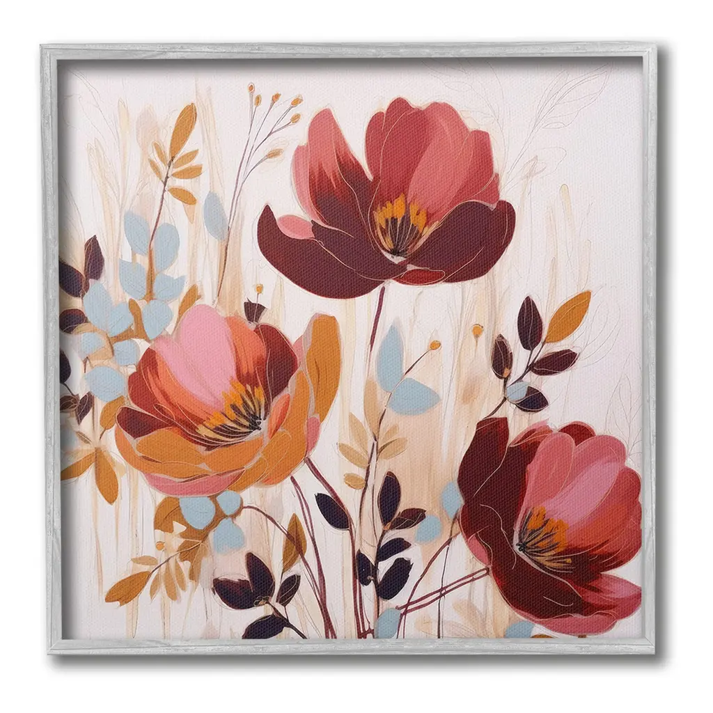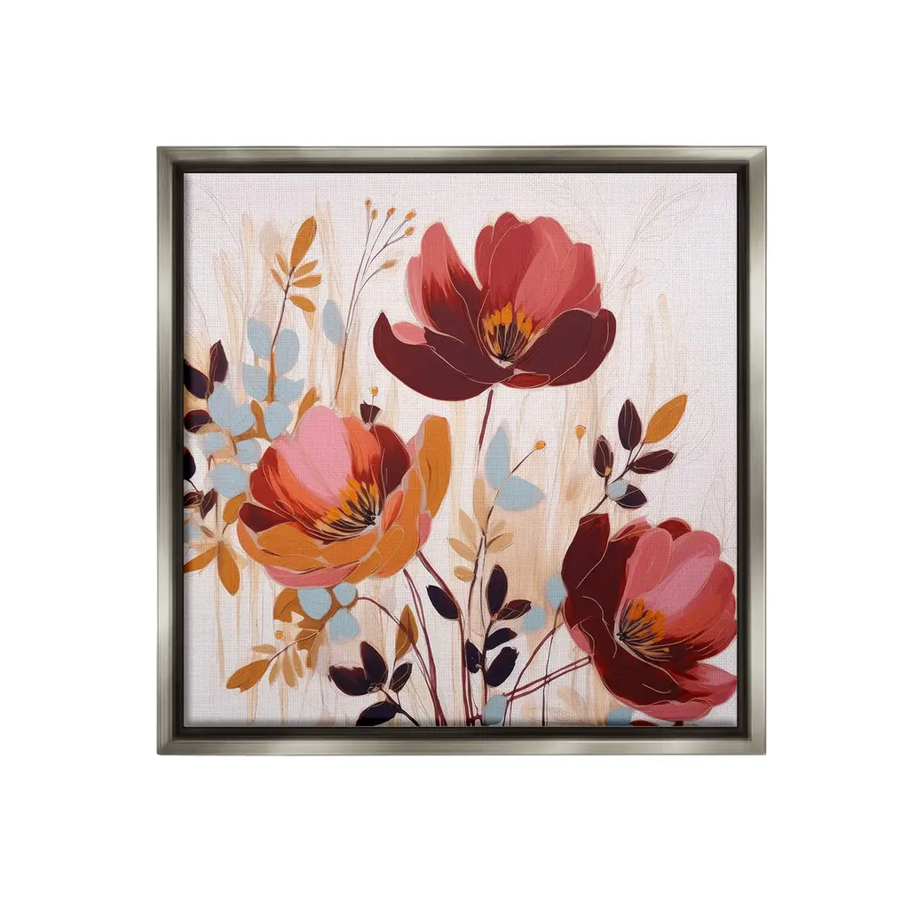 Elevate your home or office to the next level with Stupell Framed Floating Canvas Wall Art. Our premium hand-stretched canvas is mounted securely into a sturdy lightweight frame. The museum-style gap between the wrapped canvas and the box frame gives the illusion of floating artwork. Stupell Wall Art is made in the USA.Features: Dimensions: 18 x 1.7 x 18 Frame, 17 x 1.5 x 17 Canvas ArtFloating Frame Canvas Products are available in sizes 18"x18" and 25"x25". All Floating Frame Canvas Products have a 1.7" Depth.Wall Art is Ready to Hang with Hardware Free Hanging. No Installation required. For Easy Set Up Lean or Layer Artwork on Shelf or Against Wall. Artwork is Permently Fixed into the Frame.Our elevated 1.7" Thick Floating Frame is the perfect complement to our canvas style Wall Art. We use only the highest quality inks in house with industry leading printing solutions. Canvas is hand stretched over a durable wood foundation and then mounted securly into a Modern Box Frame. Made in the USA.Artwork Relates To: Abstract, Flower, Floral, Boho, GeometricDesign by Annie Warren