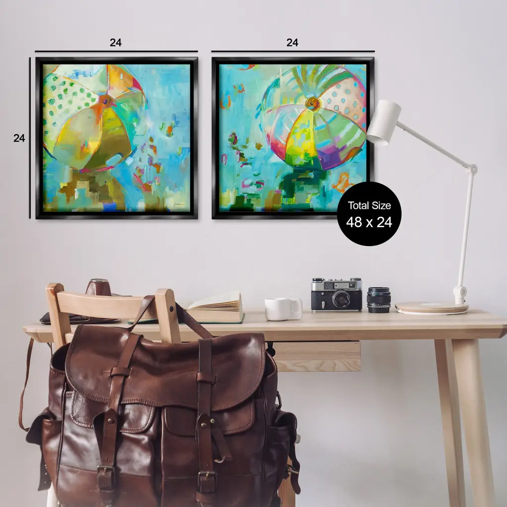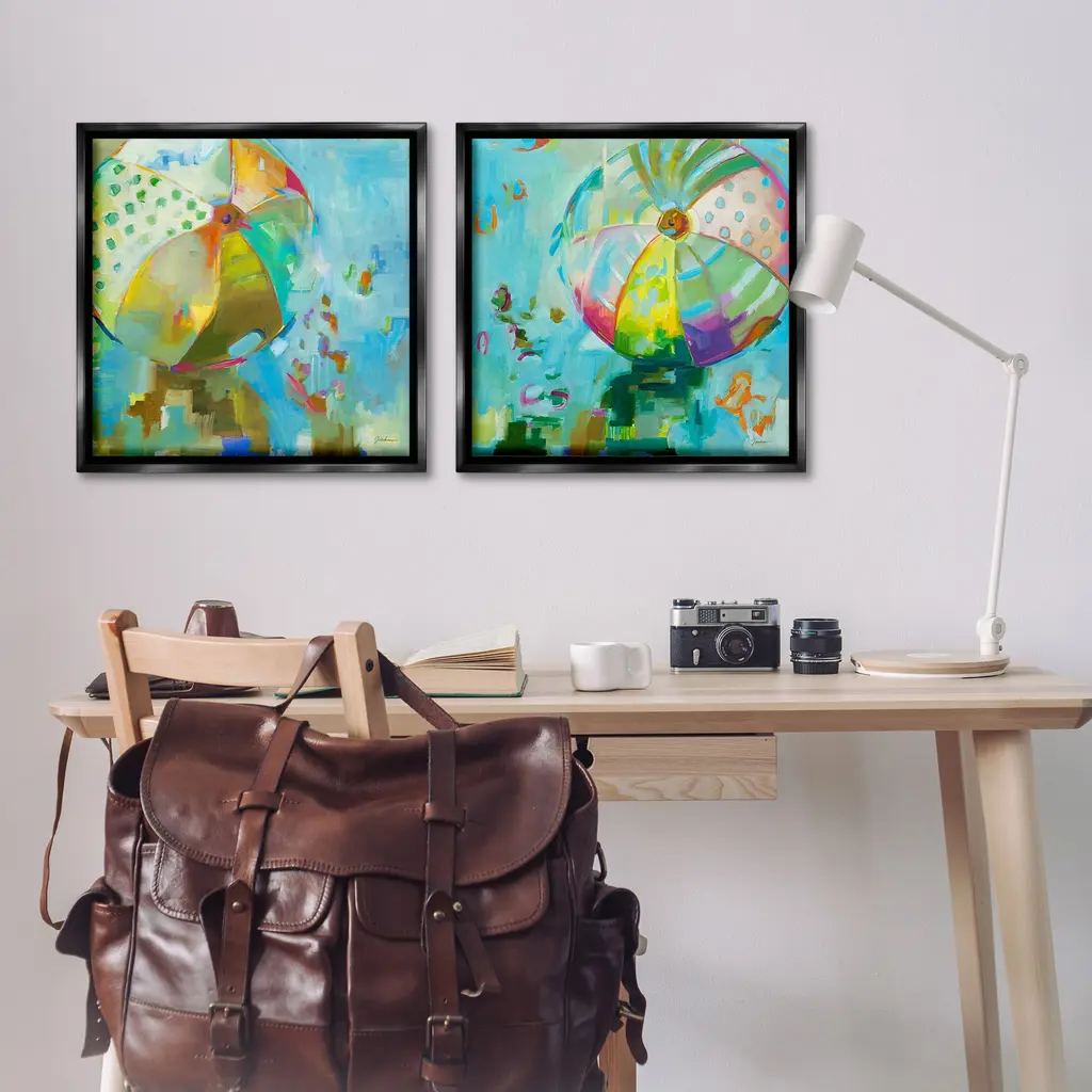 Elevate your home or office to the next level with Stupell Framed Floating Canvas Wall Art. Our premium hand-stretched canvas is mounted securely into a sturdy lightweight frame. The museum-style gap between the wrapped canvas and the box frame gives the illusion of floating artwork. Stupell Wall Art is made in the USA.Features: Dimensions: 2 Piece Set, Each Frame is 18 x 1.7 x 18Two Piece Floating Frame Canvas Products are available as 18"x18" or 25"x25" Panels. All Floating Frame Canvas Products have a 1.7" Depth.Wall Art is Ready to Hang with Hardware Free Hanging. No Installation required. For Easy Set Up Lean or Layer Artwork on Shelf or Against Wall. Artwork is Permently Fixed into the Frame.Our elevated 1.7" Thick Floating Frame is the perfect complement to our canvas style Wall Art. We use only the highest quality inks in house with industry leading printing solutions. Canvas is hand stretched over a durable wood foundation and then mounted securly into a Modern Box Frame. Made in the USA.Artwork Relates To: Abstract, Beach, Nautical, Summer, Ball, SportsDesign by Liz Jardine