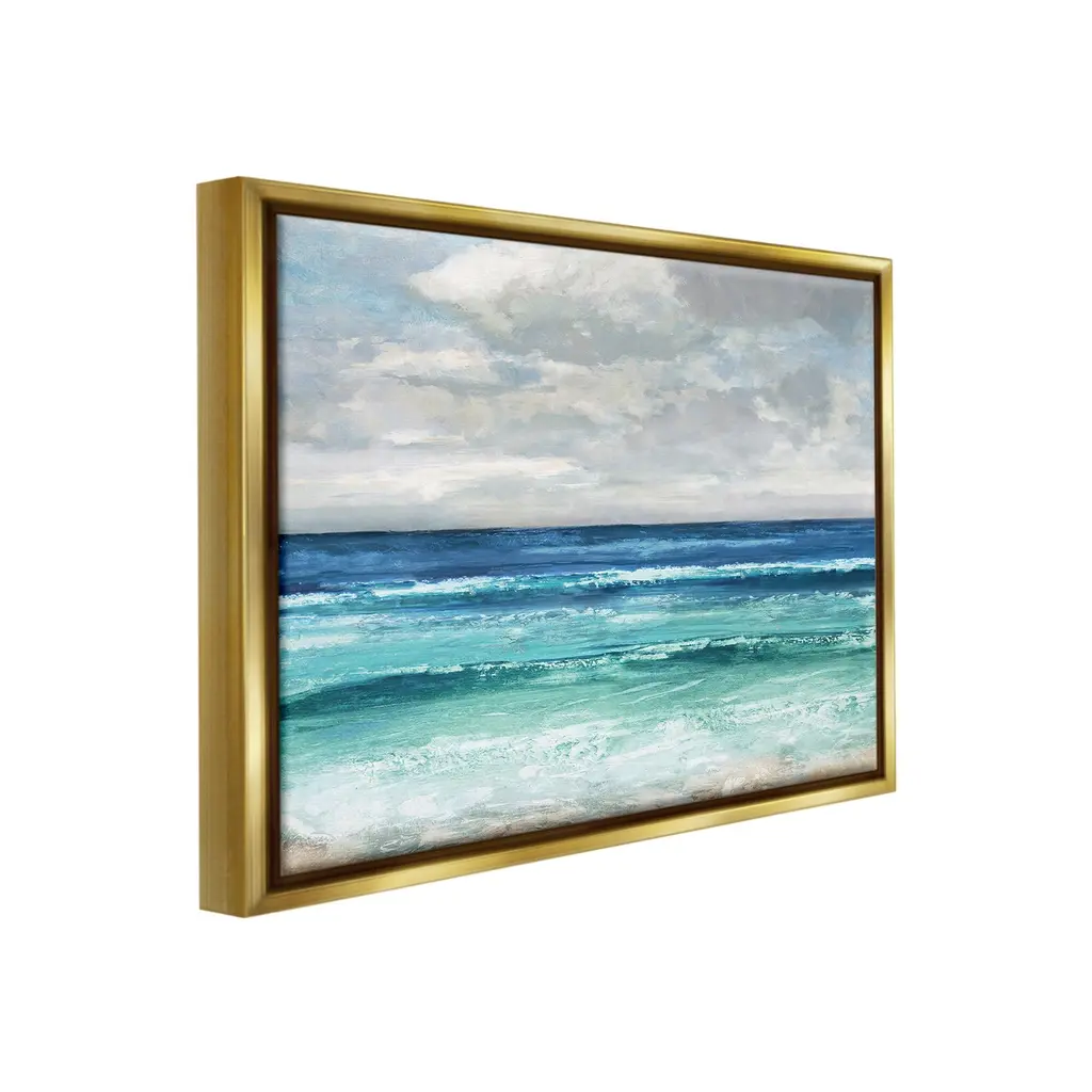 Elevate your home or office to the next level with Stupell Framed Floating Canvas Wall Art. Our premium hand-stretched canvas is mounted securely into a sturdy lightweight frame. The museum-style gap between the wrapped canvas and the box frame gives the illusion of floating artwork. Stupell Wall Art is made in the USA.Features: Dimensions: 21 x 1.7 x 17 Frame, 20 x 1.5 x 16 Canvas ArtFloating Frame Canvas Products are available in sizes 21"x17" and 31"x25". All Floating Frame Canvas Products have a 1.7" Depth.Wall Art is Ready to Hang with Hardware Free Hanging. No Installation required. For Easy Set Up Lean or Layer Artwork on Shelf or Against Wall. Artwork is Permently Fixed into the Frame.Our elevated 1.7" Thick Floating Frame is the perfect complement to our canvas style Wall Art. We use only the highest quality inks in house with industry leading printing solutions. Canvas is hand stretched over a durable wood foundation and then mounted securly into a Modern Box Frame. Made in the USA.Artwork Relates To: Sky, Sea, Water, Horizon, Beach, Coast, Shoreline, Landscape, Summer, CloudsDesign by Amber Sterling