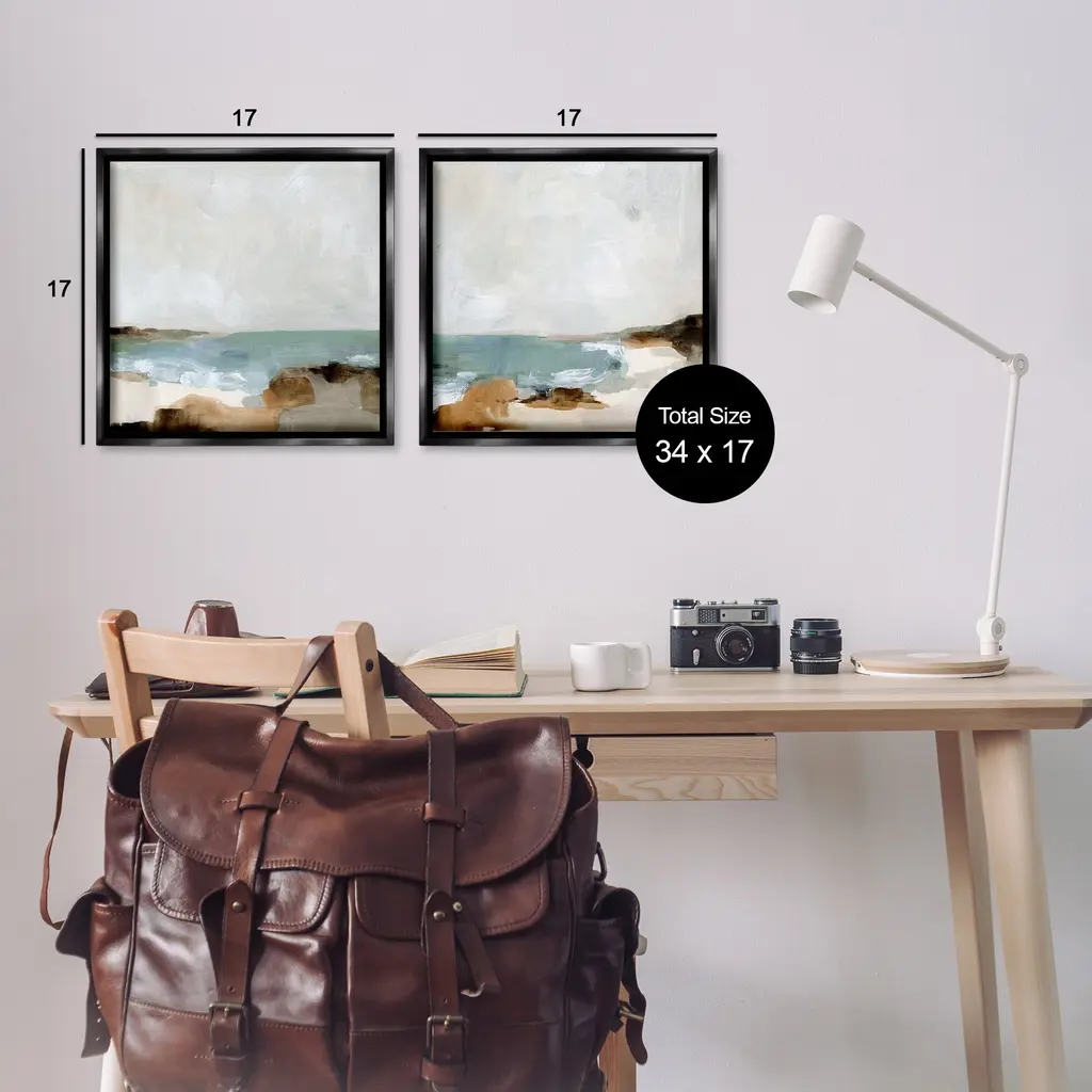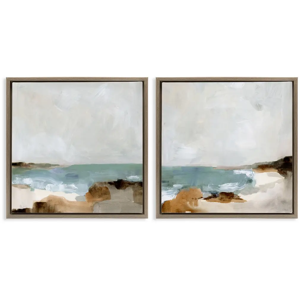 Elevate your home or office to the next level with Stupell Framed Floating Canvas Wall Art. Our premium hand-stretched canvas is mounted securely into a sturdy lightweight frame. The museum-style gap between the wrapped canvas and the box frame gives the illusion of floating artwork. Stupell Wall Art is made in the USA.Features: Dimensions: 2 Piece Set, Each Frame is 18 x 1.7 x 18Two Piece Floating Frame Canvas Products are available as 18"x18" or 25"x25" Panels. All Floating Frame Canvas Products have a 1.7" Depth.Wall Art is Ready to Hang with Hardware Free Hanging. No Installation required. For Easy Set Up Lean or Layer Artwork on Shelf or Against Wall. Artwork is Permently Fixed into the Frame.Our elevated 1.7" Thick Floating Frame is the perfect complement to our canvas style Wall Art. We use only the highest quality inks in house with industry leading printing solutions. Canvas is hand stretched over a durable wood foundation and then mounted securly into a Modern Box Frame. Made in the USA.Artwork Relates To: Beach, Landscape, Seaside, Coastal, Shore, Modern, AbstractDesign by Victoria Barnes