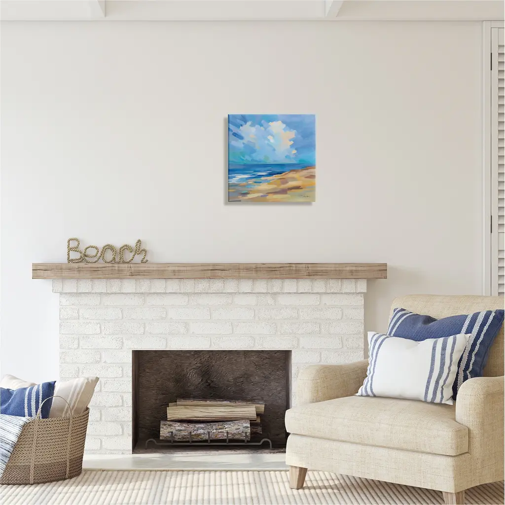 We create our stretched canvas to the highest standards. Using only the highest quality inks and canvas on Mimaki printers, we hand-cut and stretch each piece over a 1.5-inch thick wooden frame for hanging. As a result, the art comes ready to hang on the sturdy ledge with no installation required. Stupell Wall Art is made in the USA.Features: Dimensions: 17 x 1.5 x 17 InchesStretched Canvas Sizes Include Standard: 17 x 1.5 x 17 Large: 24 x 1.5 x 24 X-Large: 30 x 1.5 x 30 Oversized: 36 x 1.5 x 36Wall Art is Ready to Hang with Hardware Free Hanging. No installation required. For Easy Set Up Lean or Layer Artwork on Shelf or Against Wall.Our stretched canvas is created with the highest standards. We use only the highest quality inks and canvas on our in house Mimaki printers, and then hand cut and stretch each piece over a 1.5 inch thick wooden frame for hanging. Made In USA.Artwork Relates To: Painting, Nature, Sea, Water, Sky, Shoreline, Beach, Coast, Cloud, Modern Art, LandscapeDesign by Silvia Vassileva