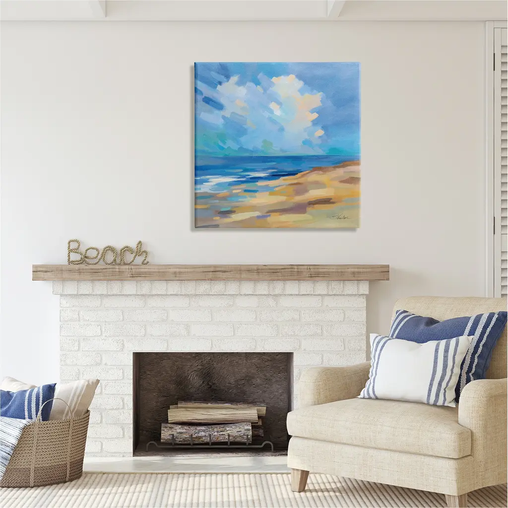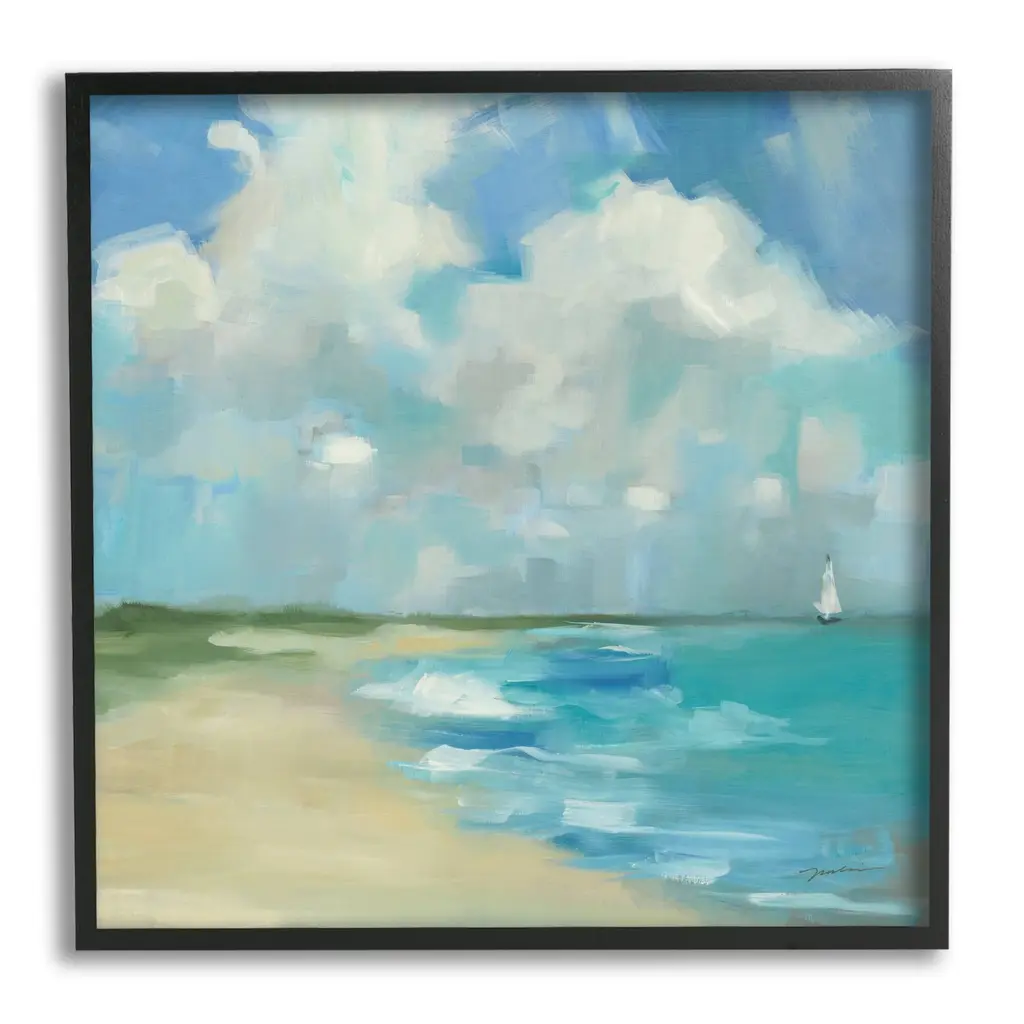 We create our stretched canvas to the highest standards. Using only the highest quality inks and canvas on Mimaki printers, we hand-cut and stretch each piece over a 1.5-inch thick wooden frame for hanging. As a result, the art comes ready to hang on the sturdy ledge with no installation required. Stupell Wall Art is made in the USA.Features: Dimensions: 17 x 1.5 x 17 InchesStretched Canvas Sizes Include Standard: 17 x 1.5 x 17 Large: 24 x 1.5 x 24 X-Large: 30 x 1.5 x 30 Oversized: 36 x 1.5 x 36Wall Art is Ready to Hang with Hardware Free Hanging. No installation required. For Easy Set Up Lean or Layer Artwork on Shelf or Against Wall.Our stretched canvas is created with the highest standards. We use only the highest quality inks and canvas on our in house Mimaki printers, and then hand cut and stretch each piece over a 1.5 inch thick wooden frame for hanging. Made In USA.Artwork Relates To: Painting, Nature, Sea, Water, Sky, Shoreline, Beach, Coast, Cloud, Modern Art, LandscapeDesign by Silvia Vassileva