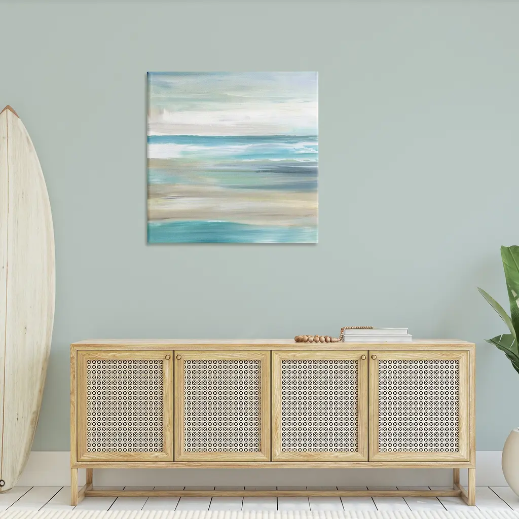We create our stretched canvas to the highest standards. Using only the highest quality inks and canvas on Mimaki printers, we hand-cut and stretch each piece over a 1.5-inch thick wooden frame for hanging. As a result, the art comes ready to hang on the sturdy ledge with no installation required. Stupell Wall Art is made in the USA.Features: Dimensions: 17 x 1.5 x 17 InchesStretched Canvas Sizes Include Standard: 17 x 1.5 x 17 Large: 24 x 1.5 x 24 X-Large: 30 x 1.5 x 30 Oversized: 36 x 1.5 x 36Wall Art is Ready to Hang - No Installation or Hardware Needed. For Easy Set Up Lean or Layer Artwork on Shelf or Against Wall.Our stretched canvas is created with the highest standards. We use only the highest quality inks and canvas on our in house Mimaki printers, and then hand cut and stretch each piece over a 1.5 inch thick wooden frame for hanging. Made In USA.Artwork Relates To: Painting, Sea, Water, Canvas, Shoreline, Modern, Beach, Coast, AbstractDesign by Nan