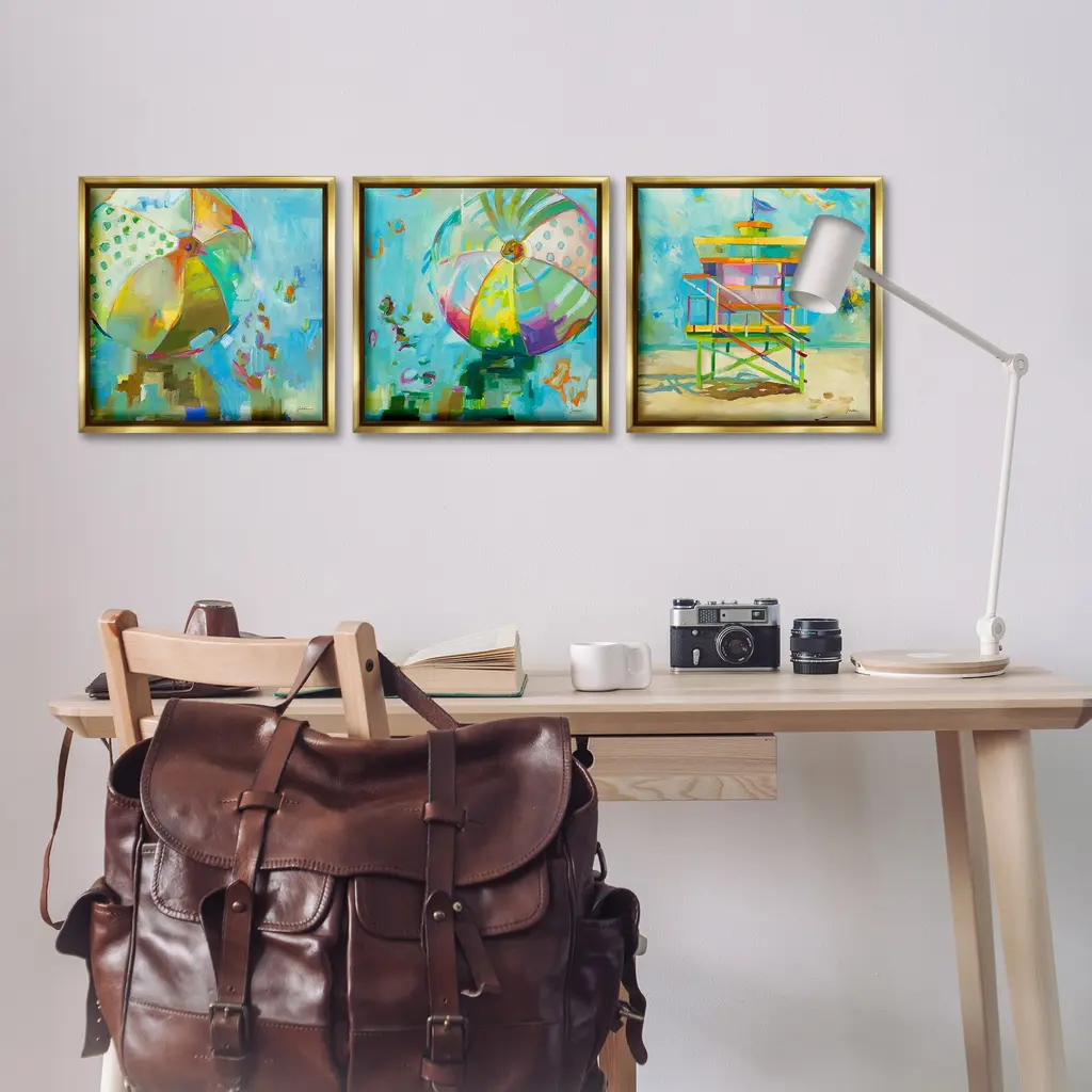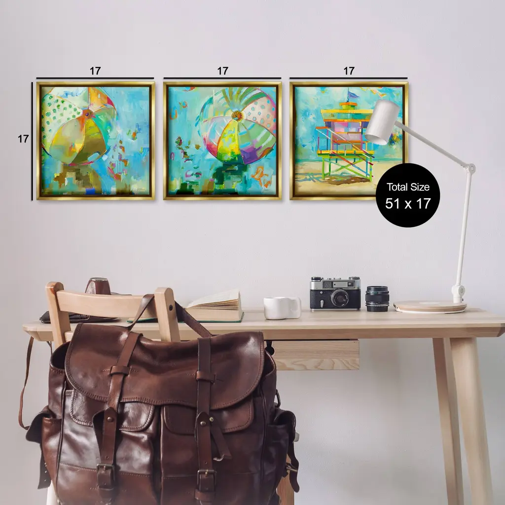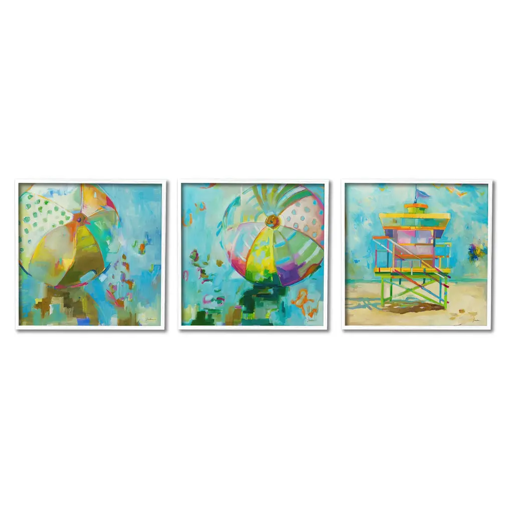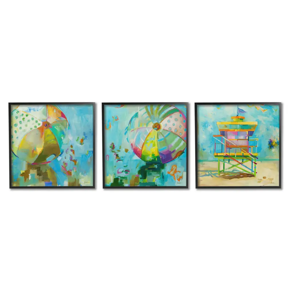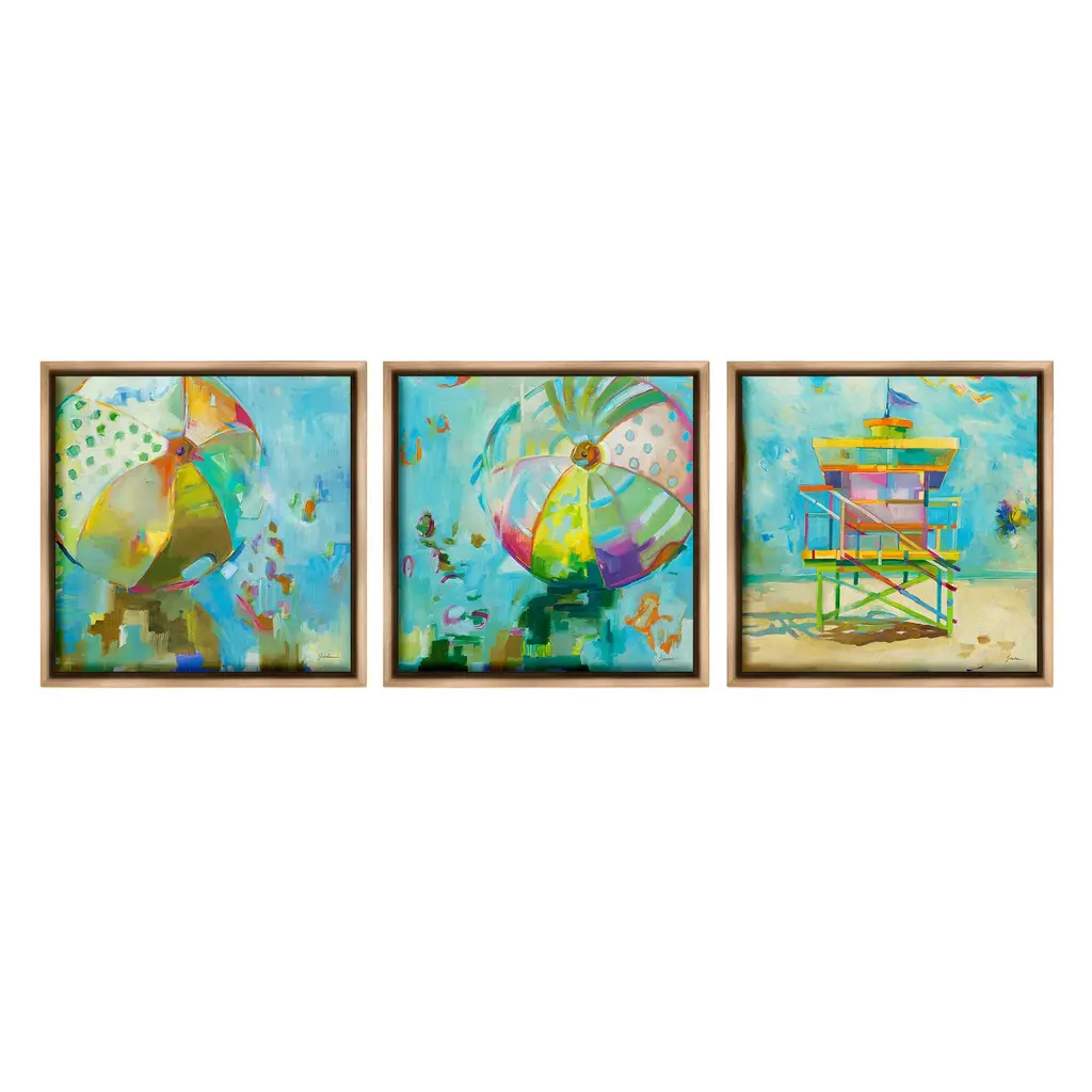 Elevate your home or office to the next level with Stupell Framed Floating Canvas Wall Art. Our premium hand-stretched canvas is mounted securely into a sturdy lightweight frame. The museum-style gap between the wrapped canvas and the box frame gives the illusion of floating artwork. Stupell Wall Art is made in the USA.Features: Dimensions: 3 Piece Set, Each Frame is 18 x 1.7 x 18Three Piece Floating Frame Canvas Products are available as 18"x18" or 25"x25" Panels. All Floating Frame Canvas Products have a 1.7" Depth.Wall Art is Ready to Hang with Hardware Free Hanging. No Installation required. For Easy Set Up Lean or Layer Artwork on Shelf or Against Wall. Artwork is Permently Fixed into the Frame.Our elevated 1.7" Thick Floating Frame is the perfect complement to our canvas style Wall Art. We use only the highest quality inks in house with industry leading printing solutions. Canvas is hand stretched over a durable wood foundation and then mounted securly into a Modern Box Frame. Made in the USA.Artwork Relates To: Modern, Painting, Abstract, Beach, Pattern, Summer, Landscape, Beach BallDesign by Liz Jardine