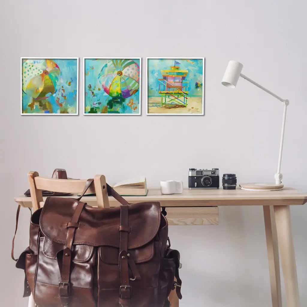 Fill any space in your home or office with our Framed Wall Art Sets. Our framed artwork is securely mounted into a 1.5-inch thick wood grain frame and ready to hang. Frames are available in three alluring styles: black, gray farmhouse and white. Stupell Wall Art is made in the USA.Features: Dimensions: 3 Piece Set, Each Panel is 12 x 1.5 x 12 FramedThree Piece Framed Giclee Sets are available as 12"x12" or 17"x17" Panels. All Framed Giclee Products have a 1.5" Depth.Wall Art is Ready to Hang with Hardware Free Hanging. No installation required. For Easy Set Up Lean or Layer Artwork on Shelf or Against Wall.Curated Wall Art Sets make it easy for you complete the theme for any room. Our giclée prints are carefully mounted on a durable MDF backing, and then perfectly finished in a 1.5 inch thick woodgrain frame. Mounted frame colors include black, gray farmhouse and white. Made In USA.Artwork Relates To: Modern, Painting, Abstract, Beach, Pattern, Summer, Landscape, Beach BallDesign by Liz Jardine