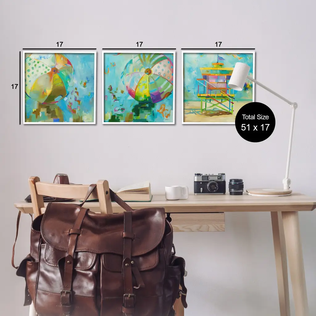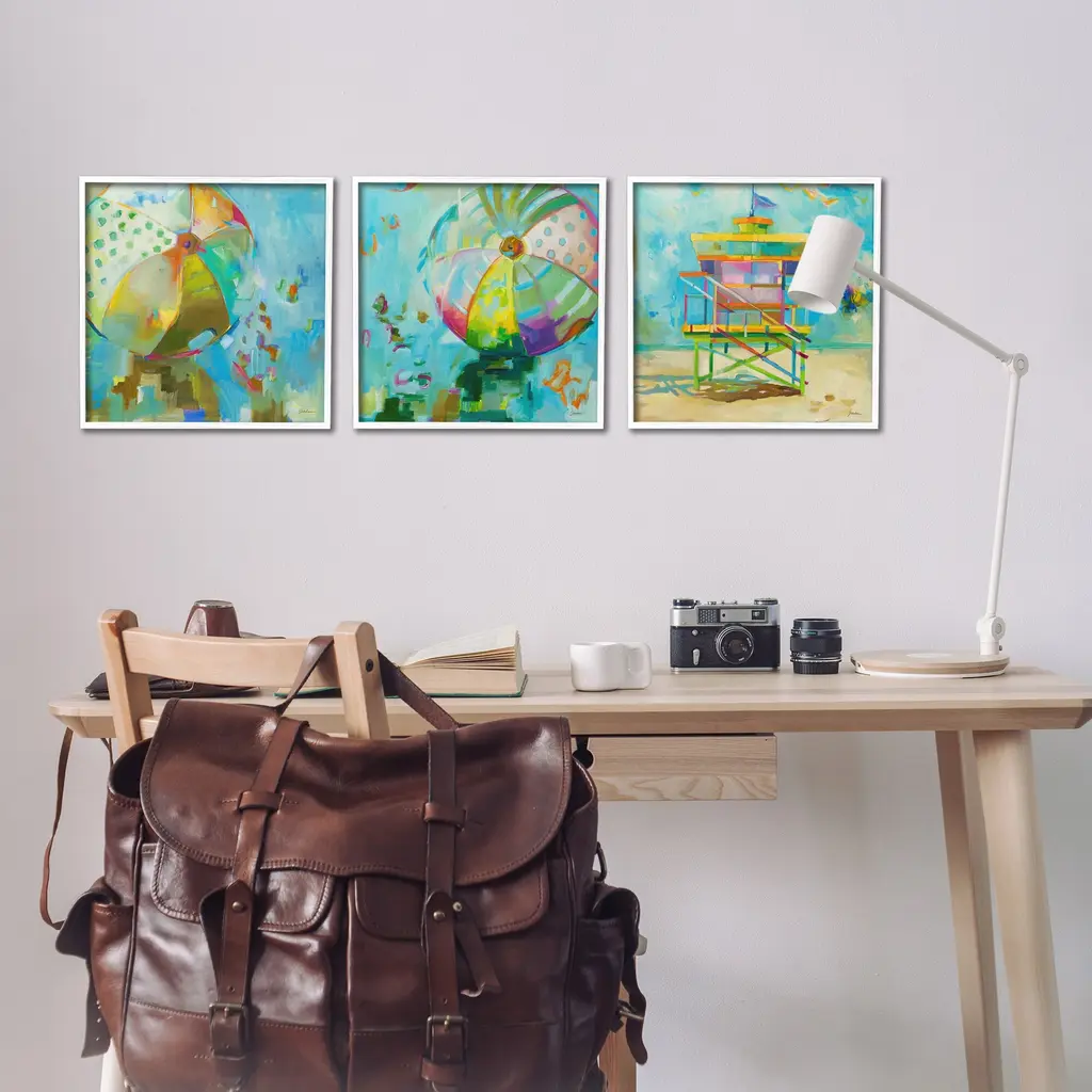 Fill any space in your home or office with our Framed Wall Art Sets. Our framed artwork is securely mounted into a 1.5-inch thick wood grain frame and ready to hang. Frames are available in three alluring styles: black, gray farmhouse and white. Stupell Wall Art is made in the USA.Features: Dimensions: 3 Piece Set, Each Panel is 12 x 1.5 x 12 FramedThree Piece Framed Giclee Sets are available as 12"x12" or 17"x17" Panels. All Framed Giclee Products have a 1.5" Depth.Wall Art is Ready to Hang with Hardware Free Hanging. No installation required. For Easy Set Up Lean or Layer Artwork on Shelf or Against Wall.Curated Wall Art Sets make it easy for you complete the theme for any room. Our giclée prints are carefully mounted on a durable MDF backing, and then perfectly finished in a 1.5 inch thick woodgrain frame. Mounted frame colors include black, gray farmhouse and white. Made In USA.Artwork Relates To: Modern, Painting, Abstract, Beach, Pattern, Summer, Landscape, Beach BallDesign by Liz Jardine