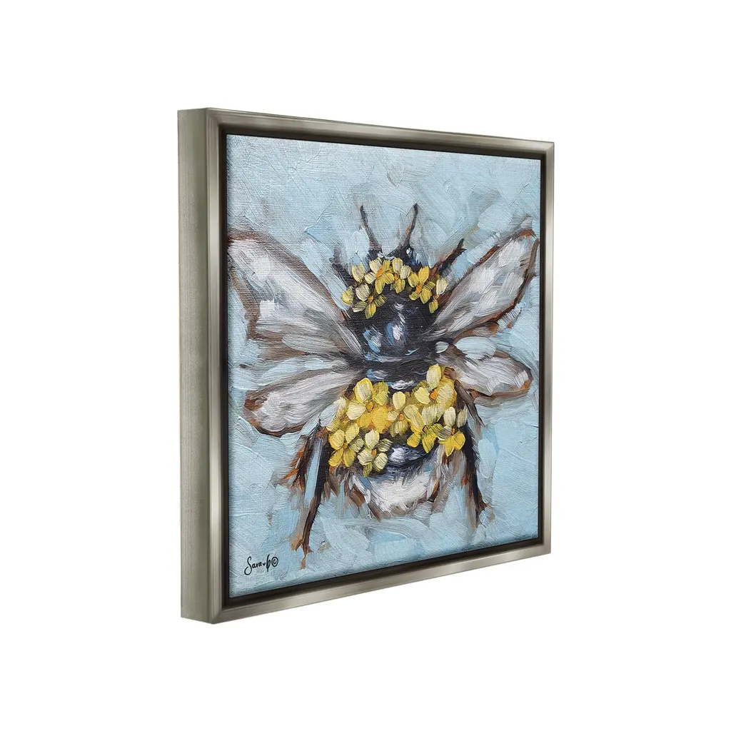 Elevate your home or office to the next level with Stupell Framed Floating Canvas Wall Art. Our premium hand-stretched canvas is mounted securely into a sturdy lightweight frame. The museum-style gap between the wrapped canvas and the box frame gives the illusion of floating artwork. Stupell Wall Art is made in the USA.Features: Dimensions: 18 x 1.7 x 18 Frame, 17 x 1.5 x 17 Canvas ArtFloating Frame Canvas Products are available in sizes 18"x18" and 25"x25". All Floating Frame Canvas Products have a 1.7" Depth.Wall Art is Ready to Hang with Hardware Free Hanging. No Installation required. For Easy Set Up Lean or Layer Artwork on Shelf or Against Wall. Artwork is Permently Fixed into the Frame.Our elevated 1.7" Thick Floating Frame is the perfect complement to our canvas style Wall Art. We use only the highest quality inks in house with industry leading printing solutions. Canvas is hand stretched over a durable wood foundation and then mounted securly into a Modern Box Frame. Made in the USA.Artwork Relates To: Animal, Bee, Insect, Invertebrate, Painting, Bumblebee, Floral, Flower, Abstract, Modern, CountryDesign by Sara G. Designs