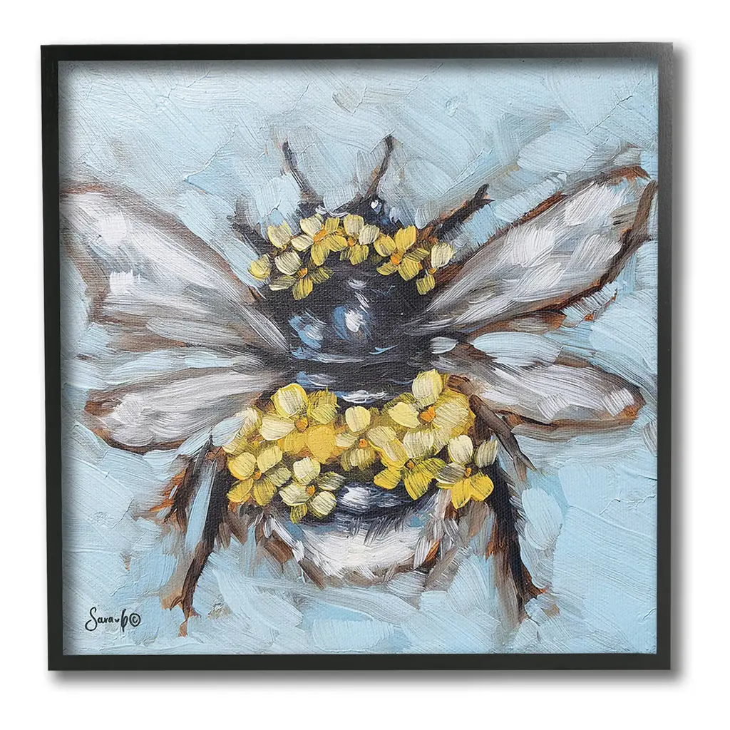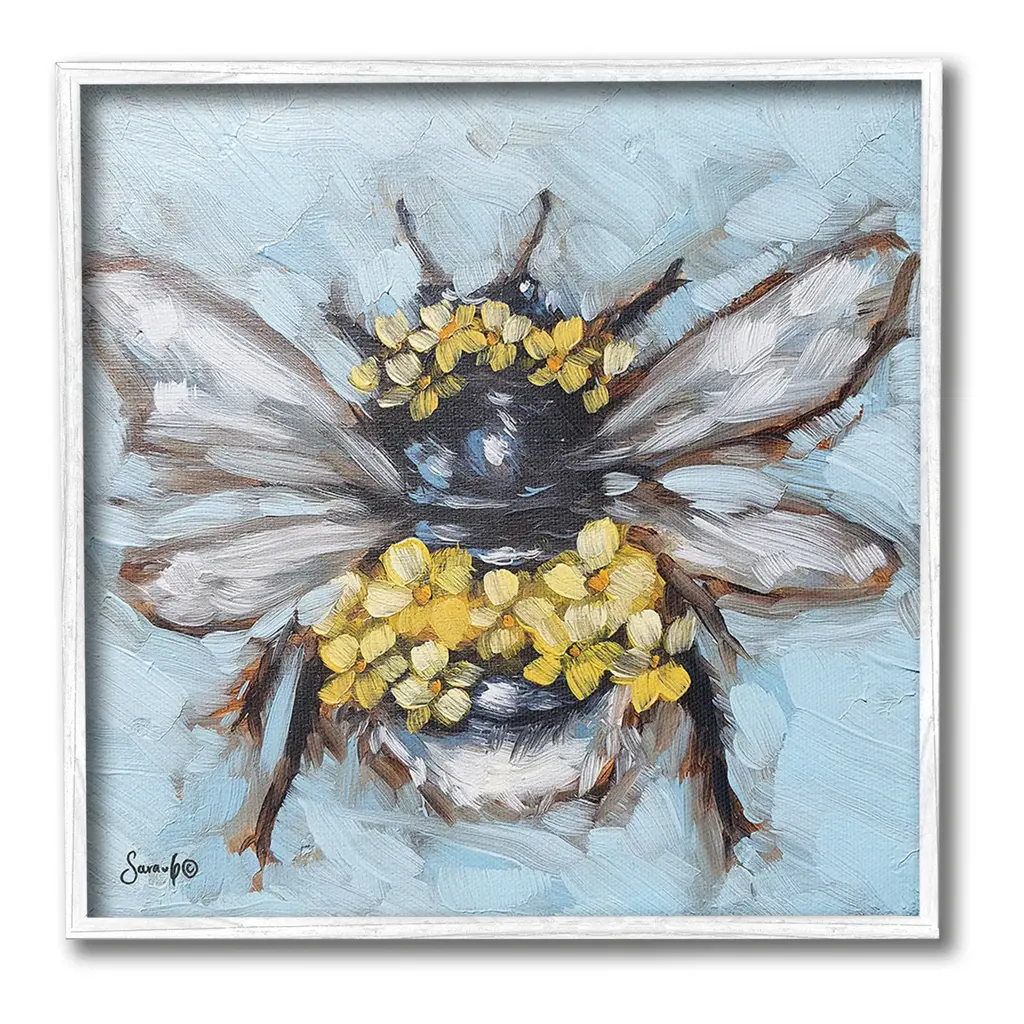 Add dimension to any room with our textured Framed Giclee Artwork. Our framed artwork is securely mounted into a 1.5-inch thick wood grain frame and ready to hang. Frames are available in three alluring styles: black, gray farmhouse and white. In addition, you should check out our oversized options if you want a statement piece. Stupell Wall Art is made in the USA.Features: Dimensions: 12 x 1.5 x 12 FramedFramed Giclee Product Sizes Include 12"x12", 17"x17", and 24"x24". Framed Giclee Products have a 1.5" Depth. Wall Art is Ready to Hang with Hardware Free Hanging. No installation required. For Easy Set Up Lean or Layer Artwork on Shelf or Against Wall.Our giclée prints are carefully mounted on a durable MDF backing, and then perfectly finished in a 1.5 inch thick woodgrain frame. Mounted frame colors include black, gray farmhouse and white. Made In USA.Artwork Relates To: Animal, Bee, Insect, Invertebrate, Painting, Bumblebee, Floral, Flower, Abstract, Modern, CountryDesign by Sara G. Designs