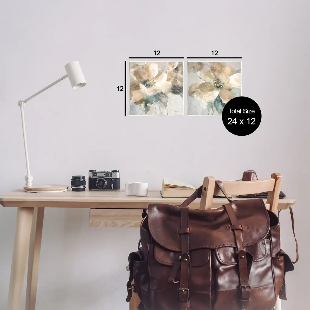 Stupell Abstract Beige Flowers 2 Piece Wall Plaque Art Set Design By Danhui Nai - 12 X 12