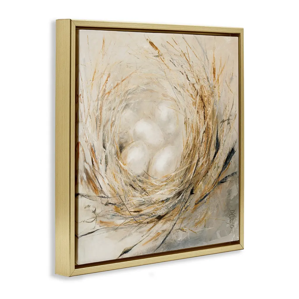 Stupell Abstract Bird Egg Nest Framed Floater Canvas Wall Art Design By - 25 X 25 - Gold
