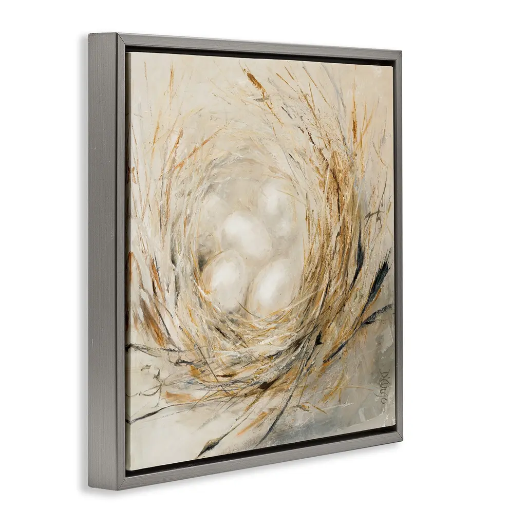 Elevate your home or office to the next level with Stupell Framed Floating Canvas Wall Art. Our premium hand-stretched canvas is mounted securely into a sturdy lightweight frame. The museum-style gap between the wrapped canvas and the box frame gives the illusion of floating artwork. Stupell Wall Art is made in the USA.Features: Dimensions: 18 x 1.7 x 18 Frame, 17 x 1.5 x 17 Canvas ArtFloating Frame Canvas Products are available in sizes 18"x18" and 25"x25". All Floating Frame Canvas Products have a 1.7" Depth.Wall Art is Ready to Hang with Hardware Free Hanging. No Installation required. For Easy Set Up Lean or Layer Artwork on Shelf or Against Wall. Artwork is Permently Fixed into the Frame.Our elevated 1.7" Thick Floating Frame is the perfect complement to our canvas style Wall Art. We use only the highest quality inks in house with industry leading printing solutions. Canvas is hand stretched over a durable wood foundation and then mounted securly into a Modern Box Frame. Made in the USA.Artwork Relates To: Country, Cottage, Nature, Bird, Bird NestDesign by