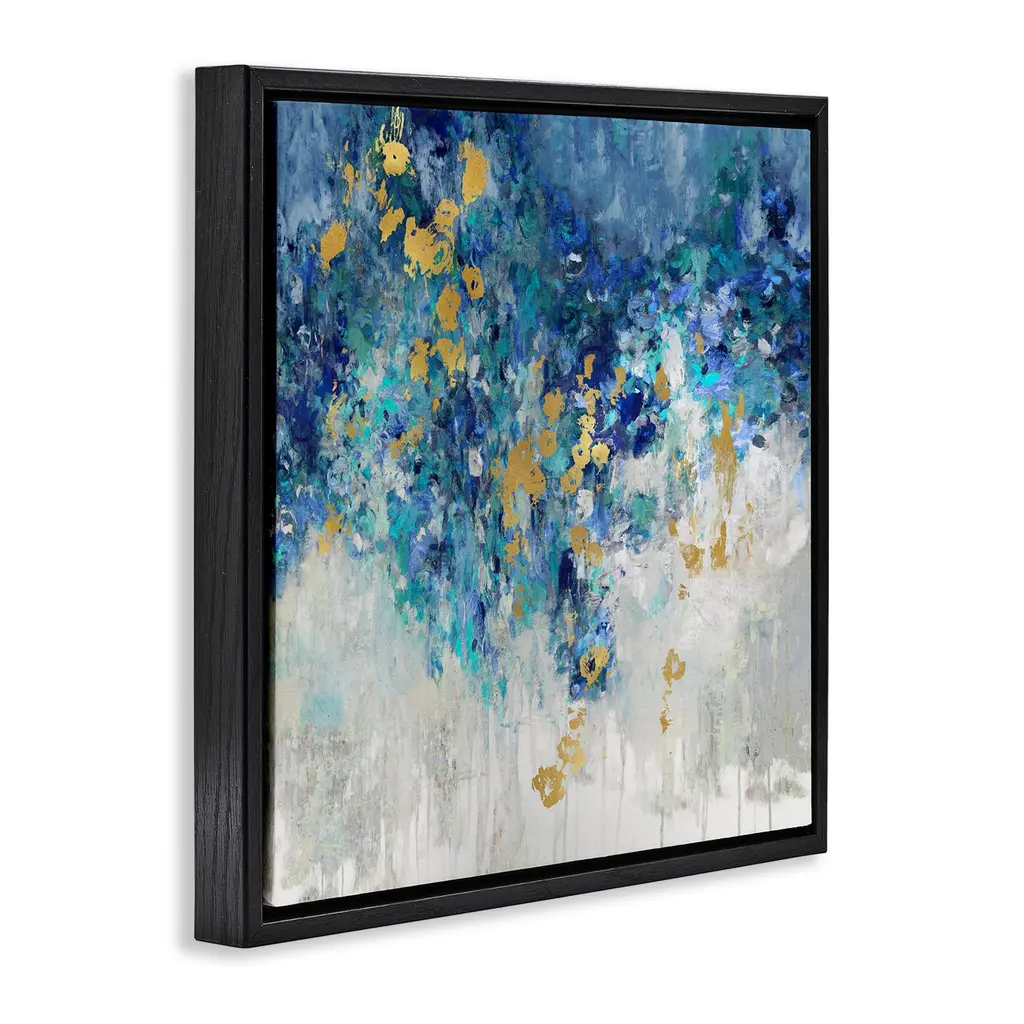 Elevate your home or office to the next level with Stupell Framed Floating Canvas Wall Art. Our premium hand-stretched canvas is mounted securely into a sturdy lightweight frame. The museum-style gap between the wrapped canvas and the box frame gives the illusion of floating artwork. Stupell Wall Art is made in the USA.Features: Dimensions: 18 x 1.7 x 18 Frame, 17 x 1.5 x 17 Canvas ArtFloating Frame Canvas Products are available in sizes 18"x18" and 25"x25". All Floating Frame Canvas Products have a 1.7" Depth.Wall Art is Ready to Hang with Hardware Free Hanging. No Installation required. For Easy Set Up Lean or Layer Artwork on Shelf or Against Wall. Artwork is Permently Fixed into the Frame.Our elevated 1.7" Thick Floating Frame is the perfect complement to our canvas style Wall Art. We use only the highest quality inks in house with industry leading printing solutions. Canvas is hand stretched over a durable wood foundation and then mounted securly into a Modern Box Frame. Made in the USA.Artwork Relates To: Abstract, Glam, Blue, Speckled, Splatter, UrbanDesign by Nikki Robbins