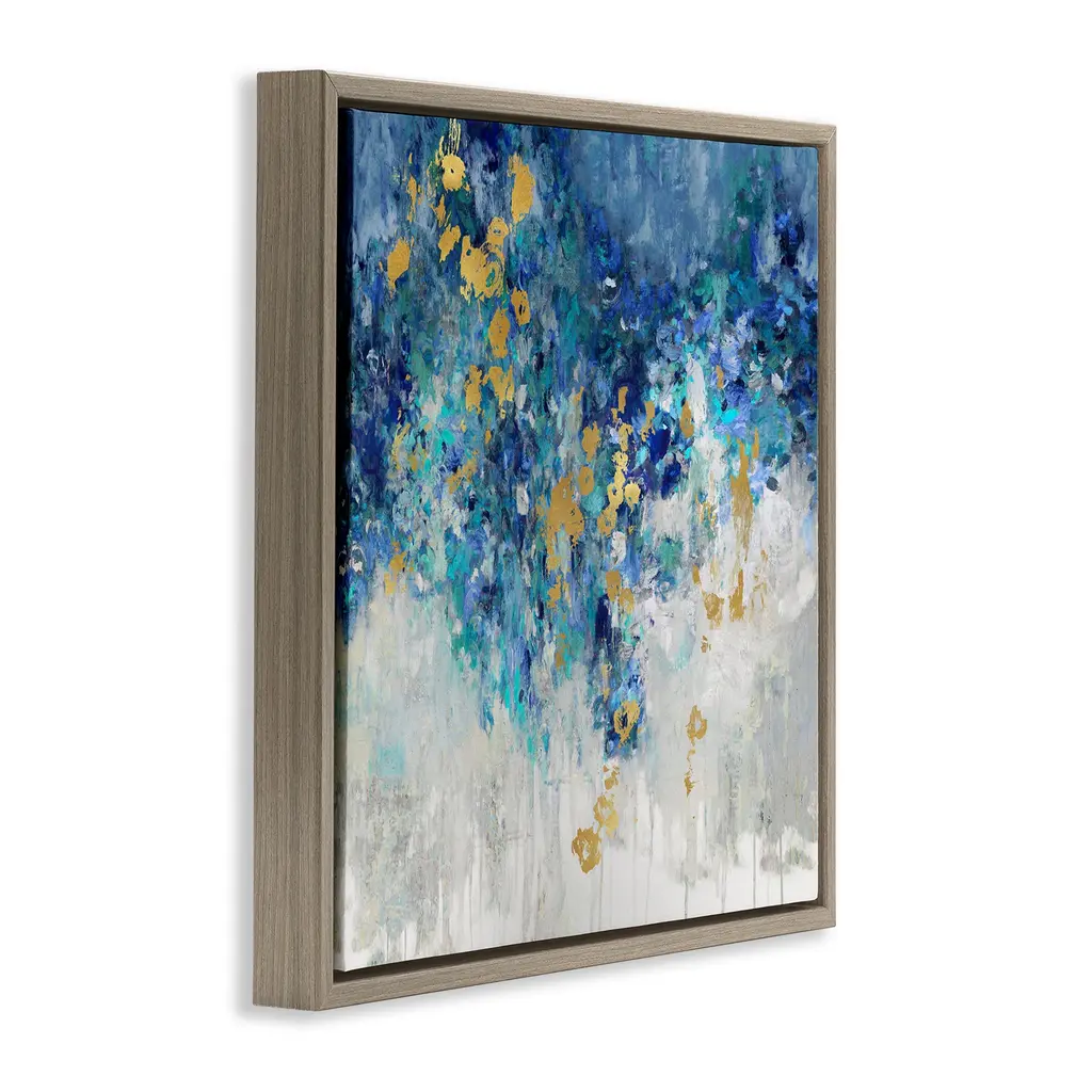 Elevate your home or office to the next level with Stupell Framed Floating Canvas Wall Art. Our premium hand-stretched canvas is mounted securely into a sturdy lightweight frame. The museum-style gap between the wrapped canvas and the box frame gives the illusion of floating artwork. Stupell Wall Art is made in the USA.Features: Dimensions: 18 x 1.7 x 18 Frame, 17 x 1.5 x 17 Canvas ArtFloating Frame Canvas Products are available in sizes 18"x18" and 25"x25". All Floating Frame Canvas Products have a 1.7" Depth.Wall Art is Ready to Hang with Hardware Free Hanging. No Installation required. For Easy Set Up Lean or Layer Artwork on Shelf or Against Wall. Artwork is Permently Fixed into the Frame.Our elevated 1.7" Thick Floating Frame is the perfect complement to our canvas style Wall Art. We use only the highest quality inks in house with industry leading printing solutions. Canvas is hand stretched over a durable wood foundation and then mounted securly into a Modern Box Frame. Made in the USA.Artwork Relates To: Abstract, Glam, Blue, Speckled, Splatter, UrbanDesign by Nikki Robbins