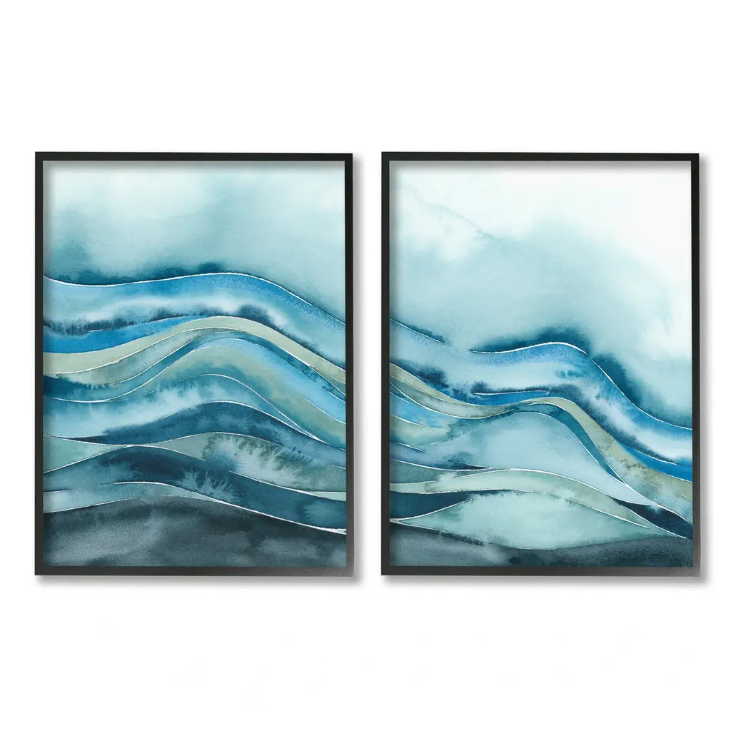 Stupell Abstract Blue Wave Seascape Tranquil Ocean Pattern Framed 2 Piece Wall Art - White - 11 X 14 - Black