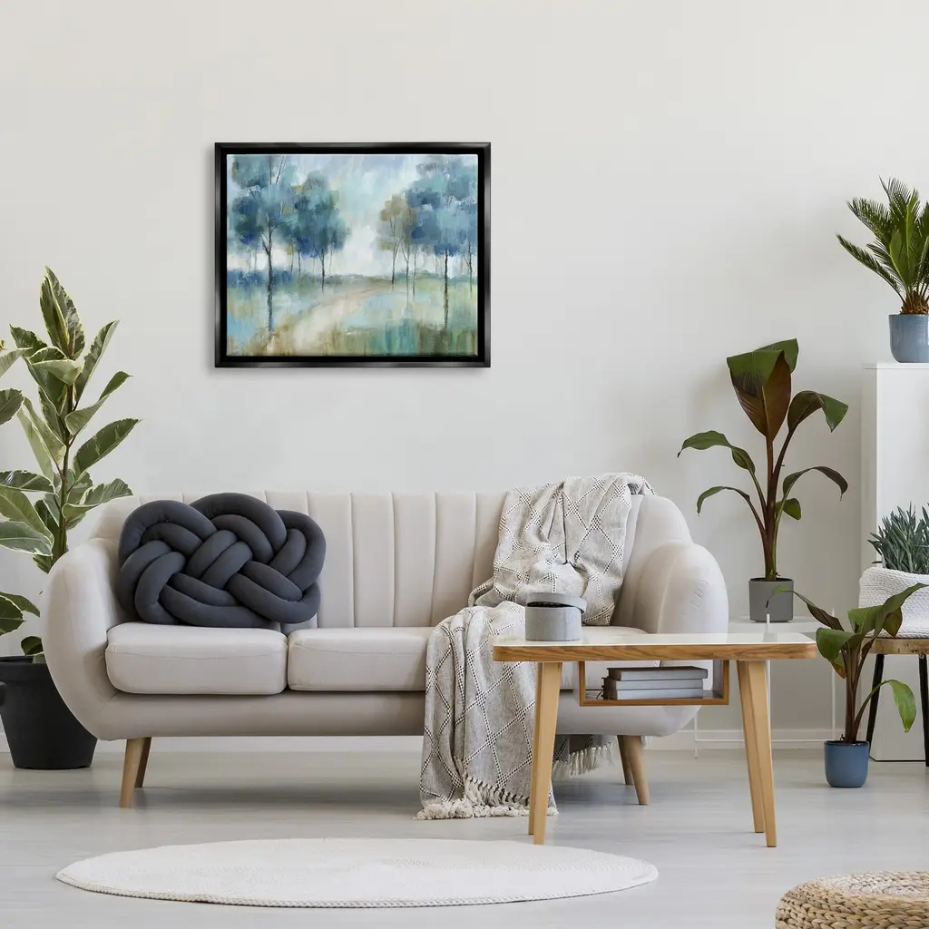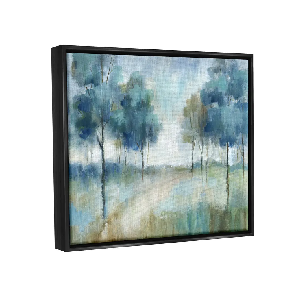 Stupell Abstract Blue Woodland Path Trees Framed Floater Canvas Wall Art By Nan - 30 X 24 - Black